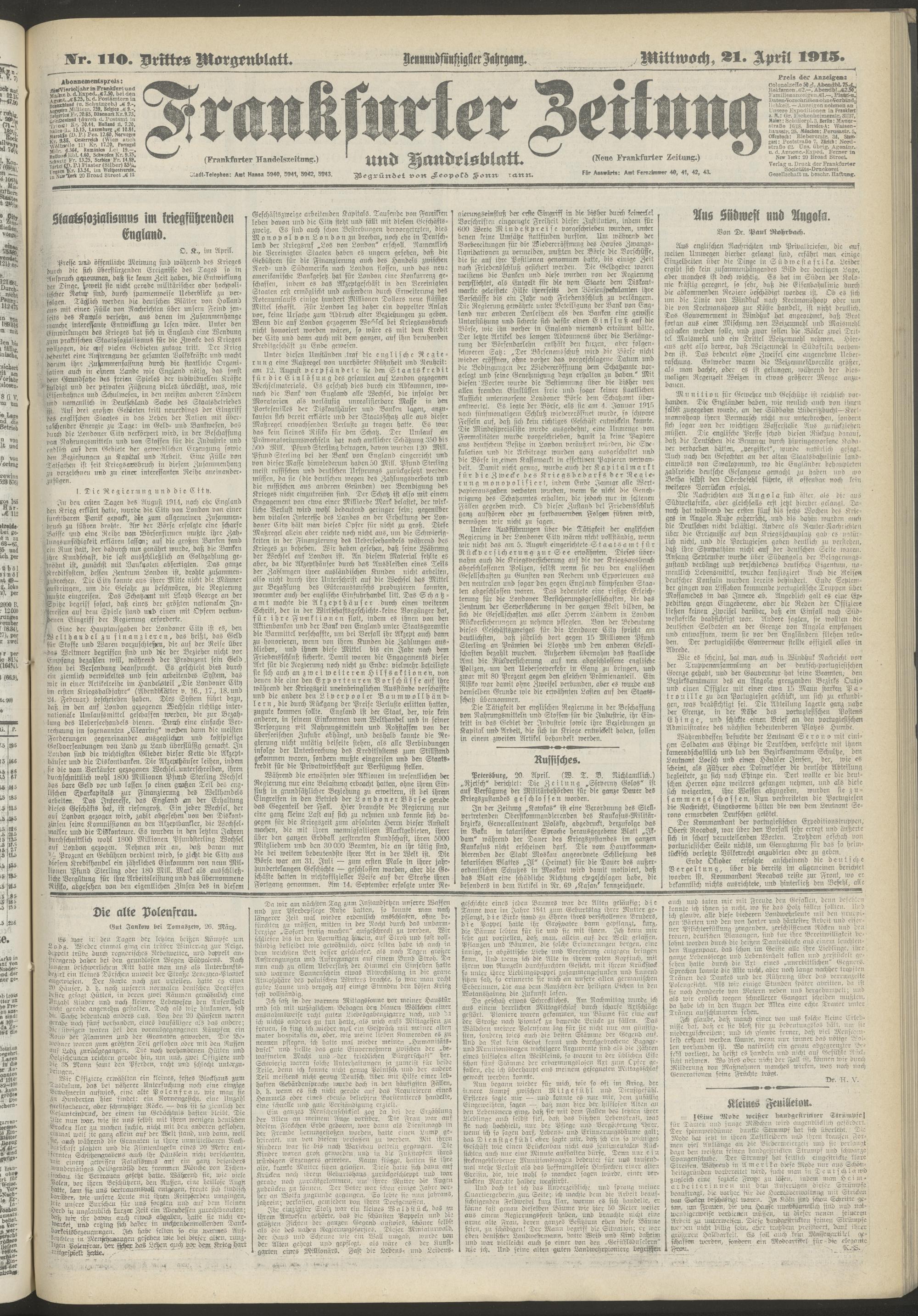 21.04.1915 = Nr. 110. Drittes Morgenblatt