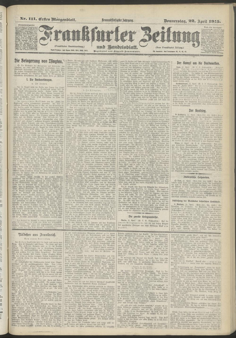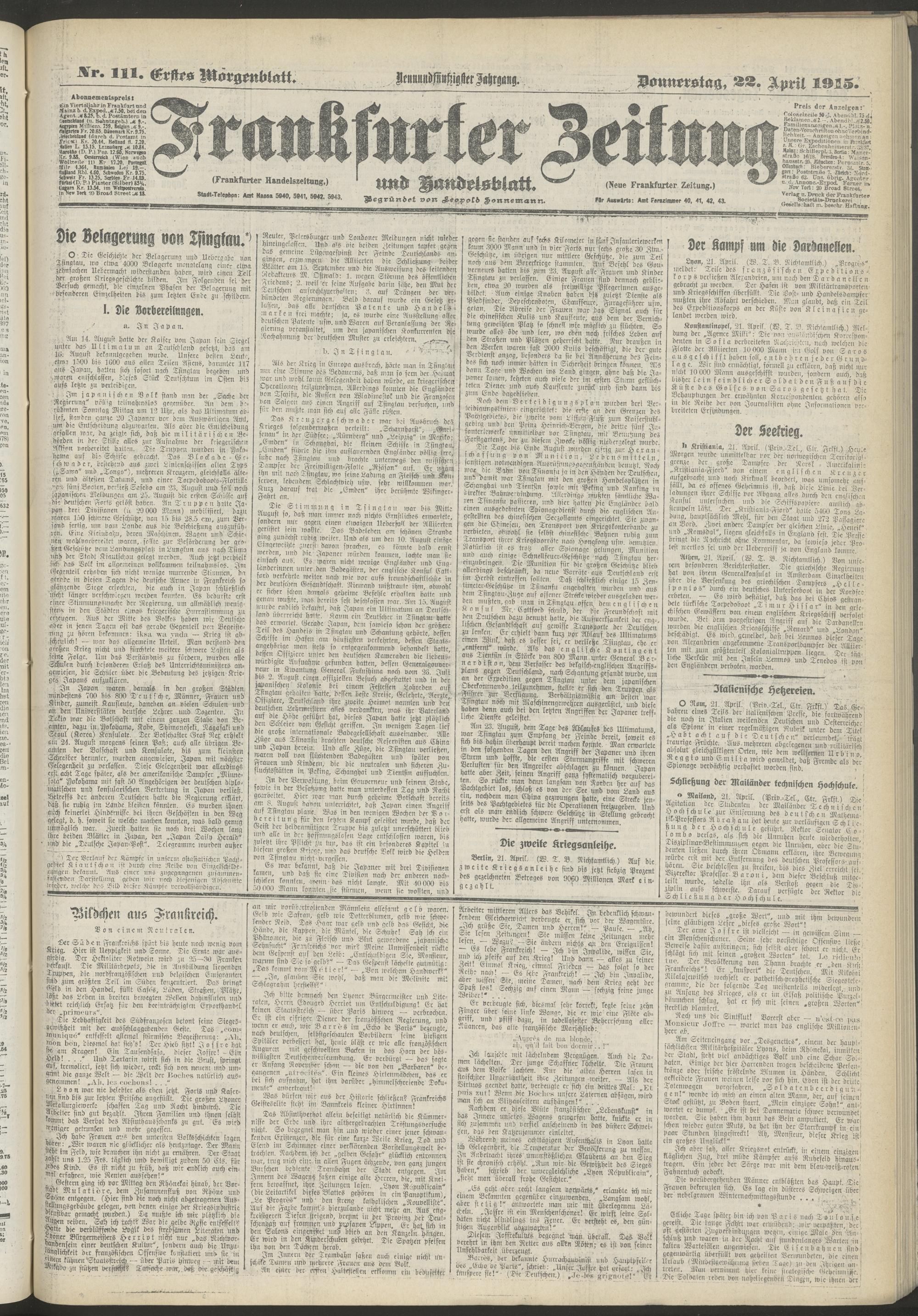 22.04.1915 = Nr. 111. Erstes Morgenblatt