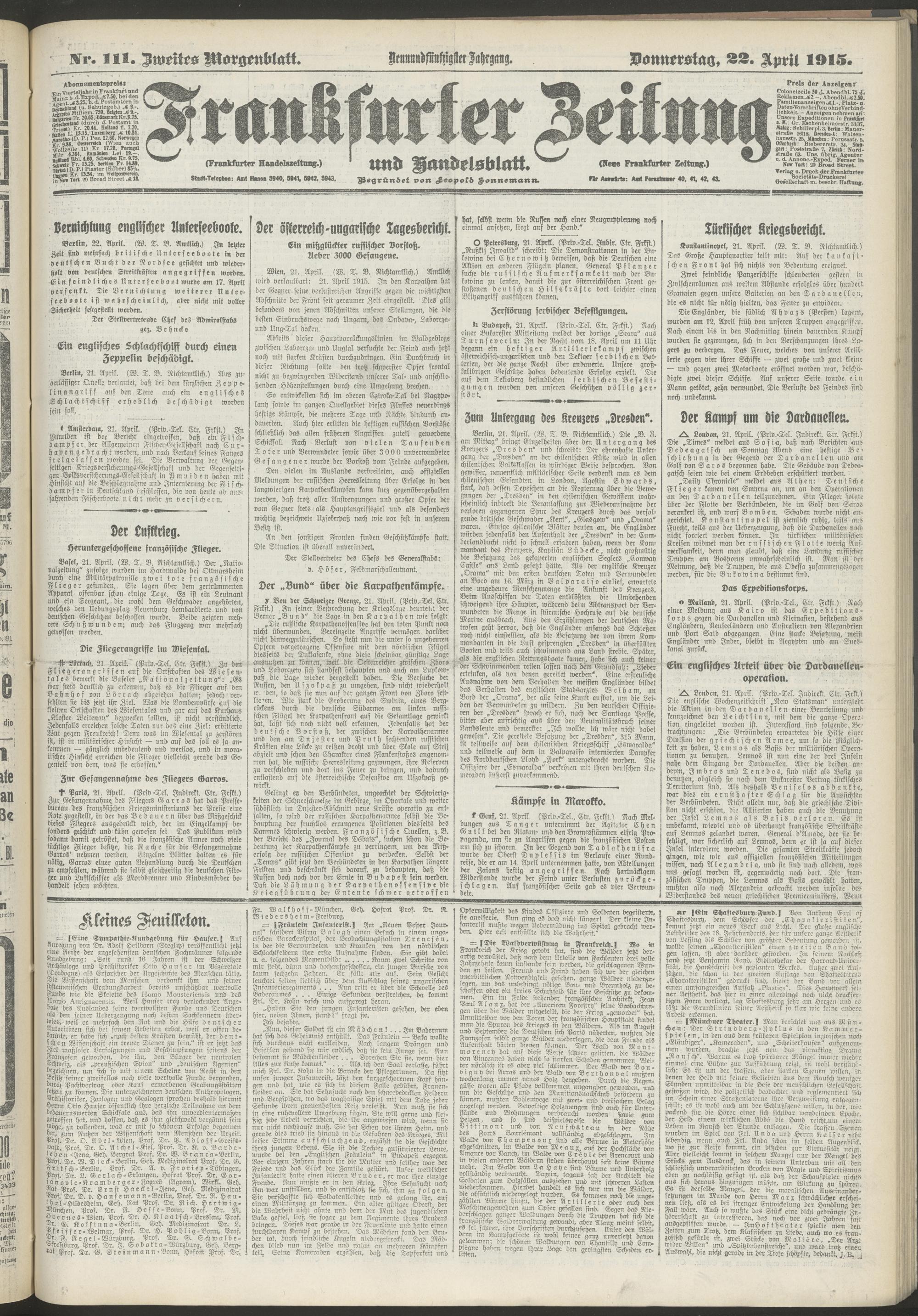 22.04.1915 = Nr. 111. Zweites Morgenblatt