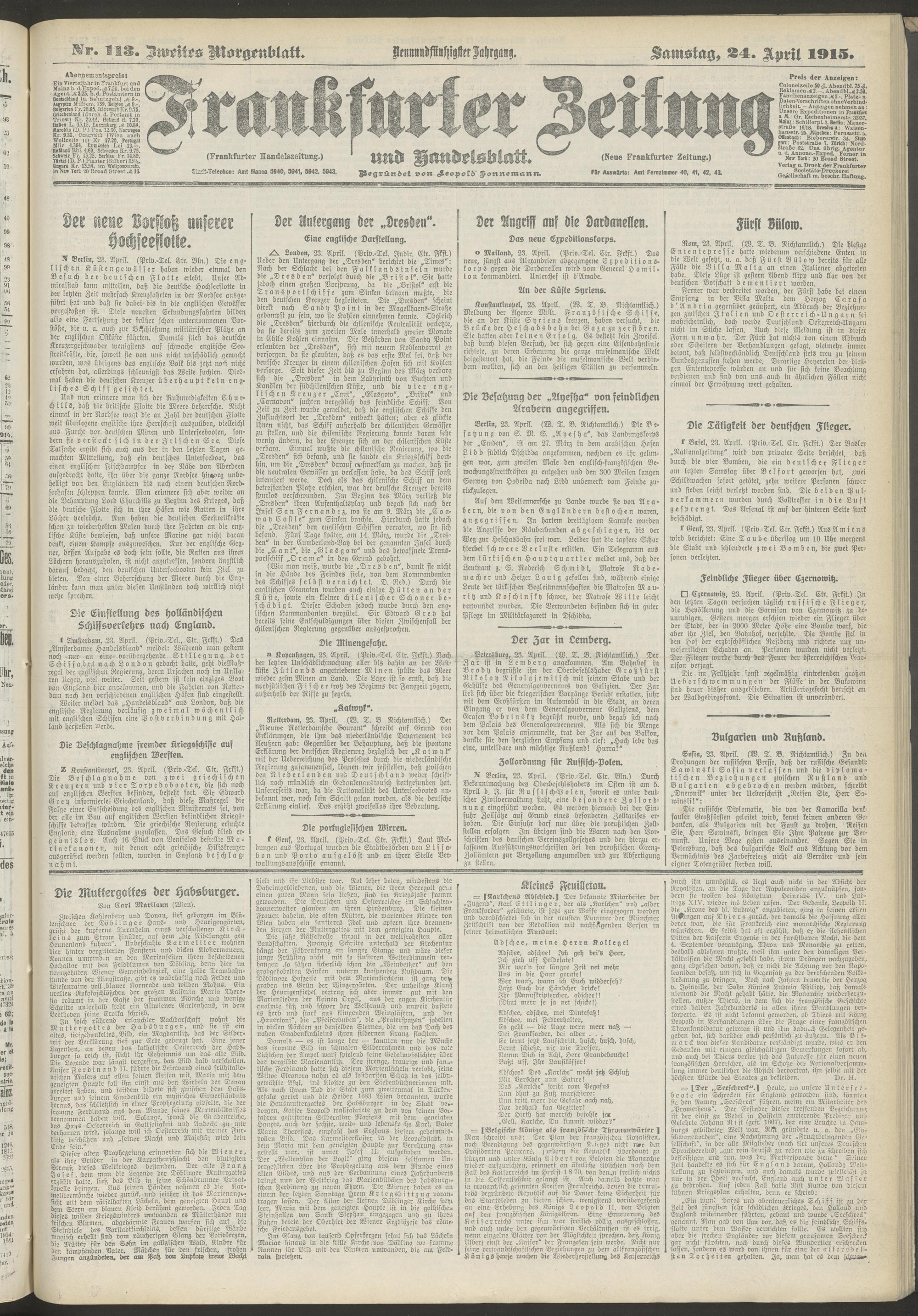 24.04.1915 = Nr. 113. Zweites Morgenblatt
