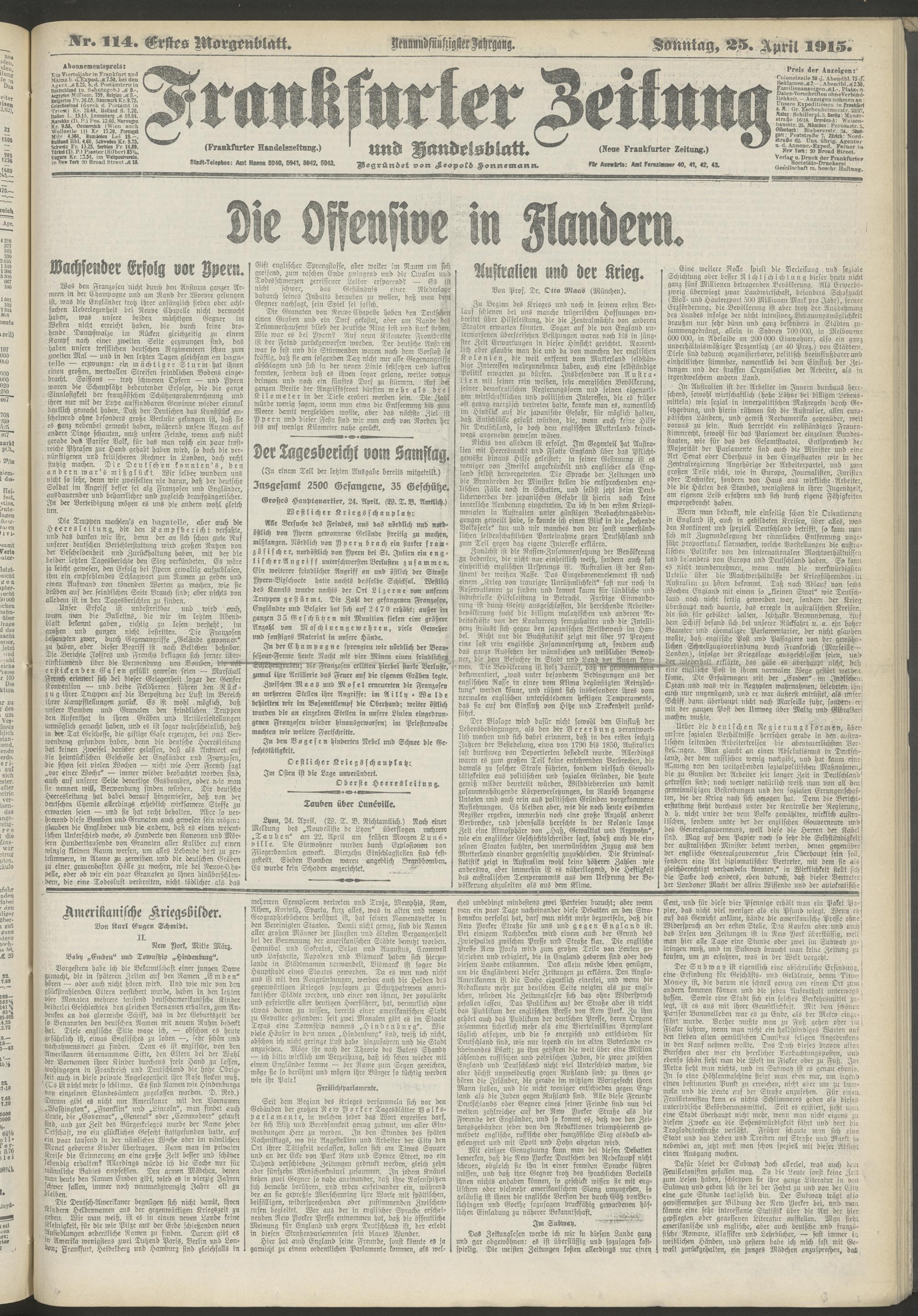 25.04.1915 = Nr. 114. Erstes Morgenblatt