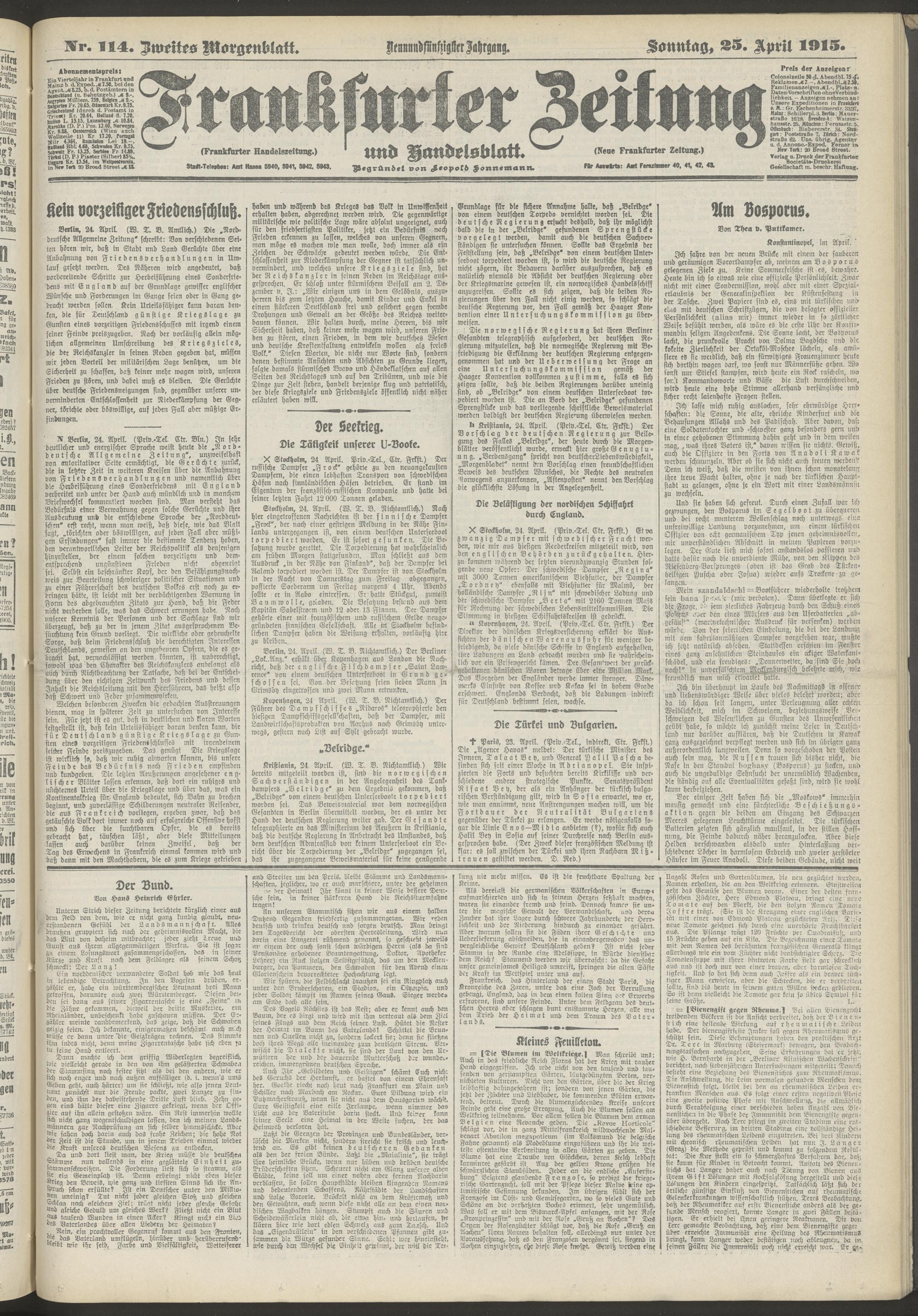 25.04.1915 = Nr. 114. Zweites Morgenblatt