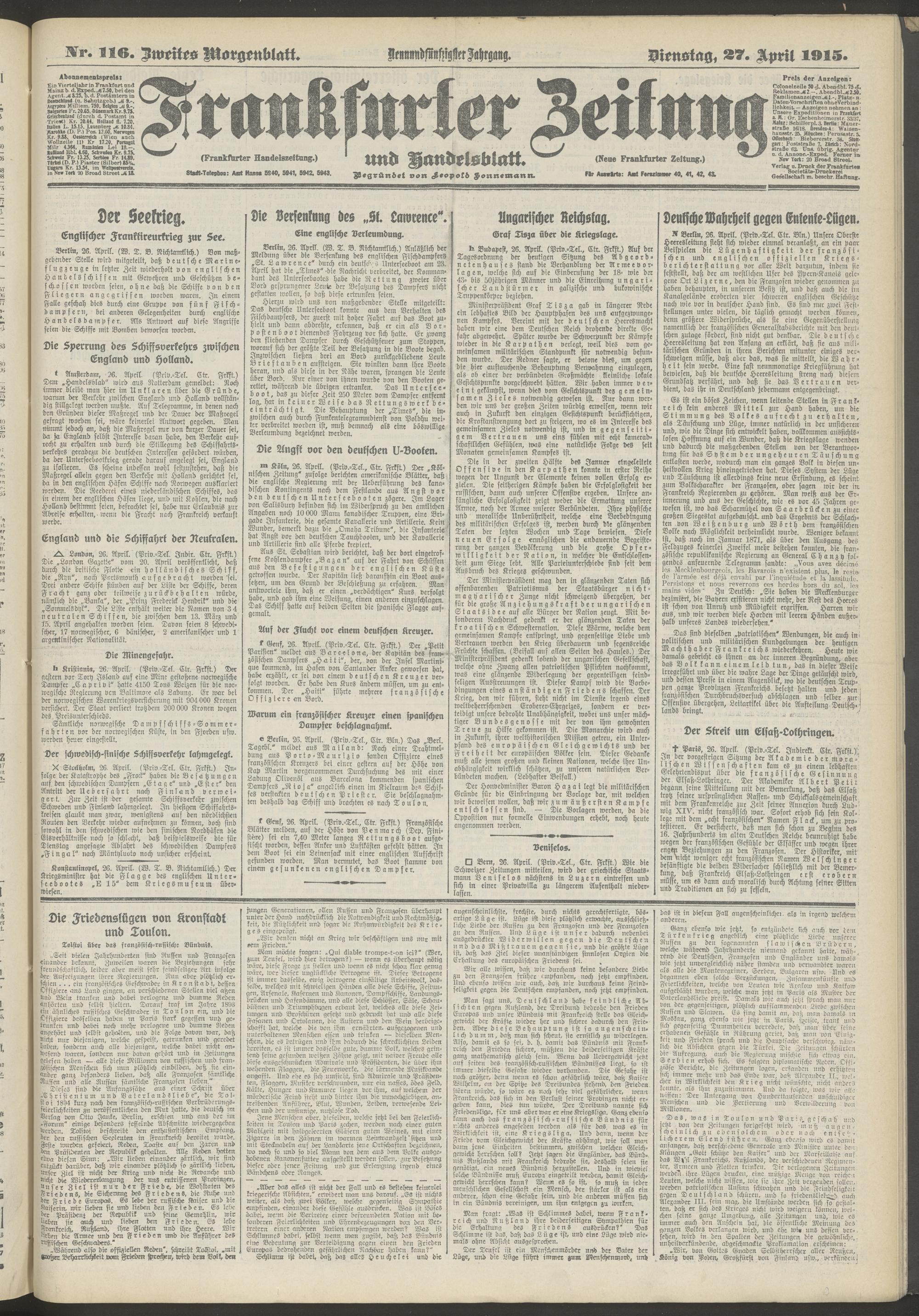 27.04.1915 = Nr. 116. Zweites Morgenblatt