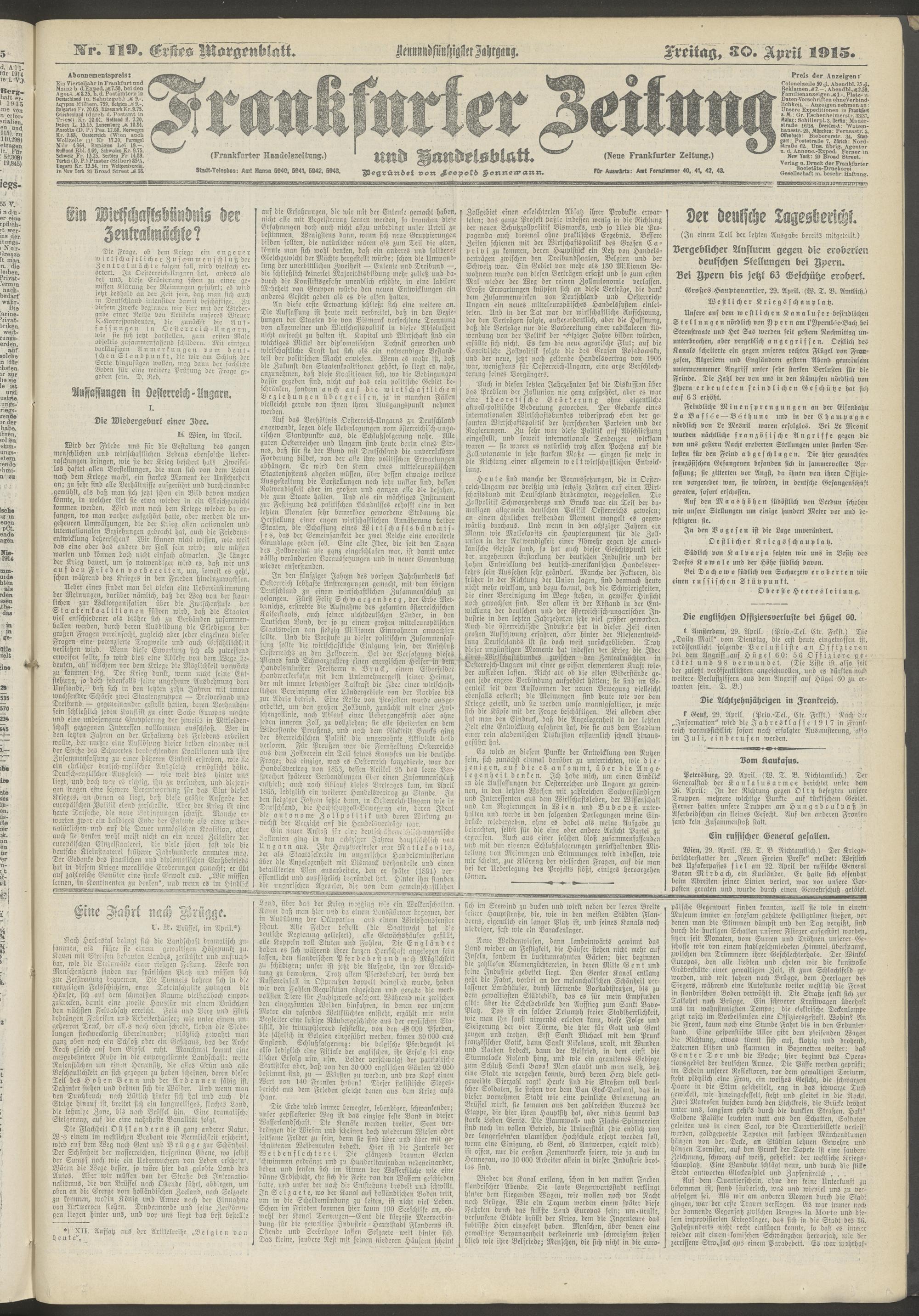 30.04.1915 = Nr. 119. Erstes Morgenblatt