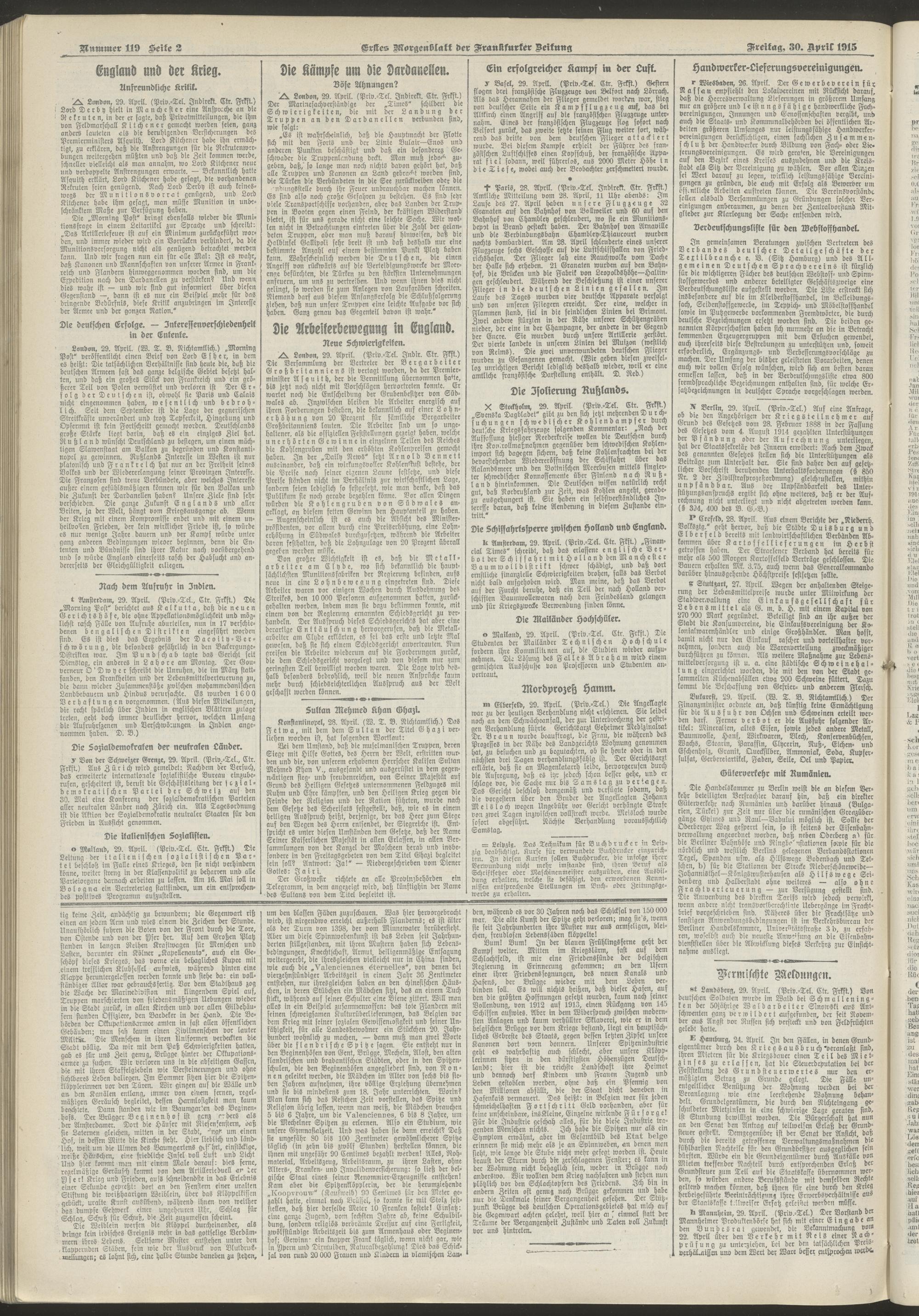 30.04.1915 = Nr. 119. Erstes Morgenblatt