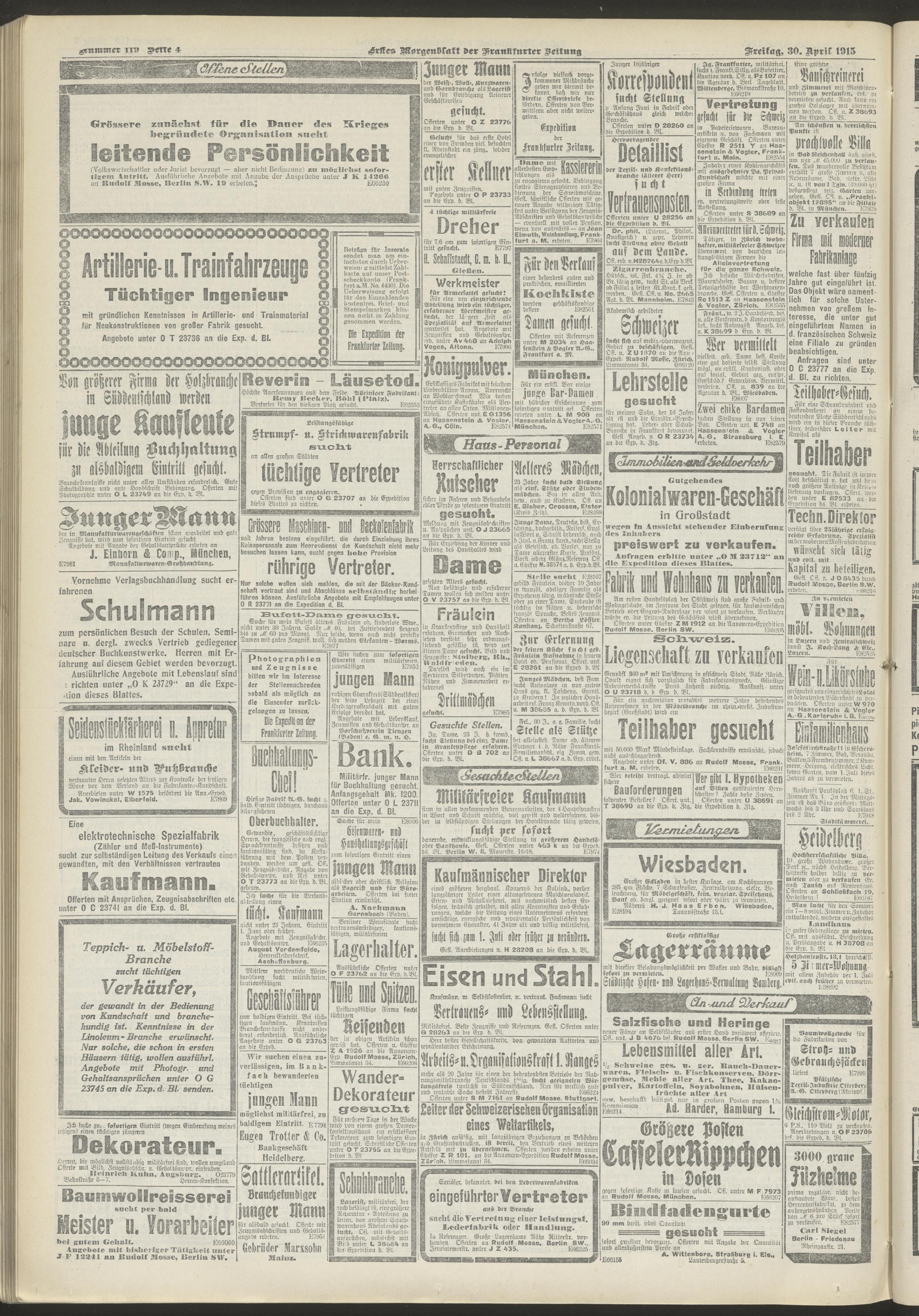 30.04.1915 = Nr. 119. Erstes Morgenblatt
