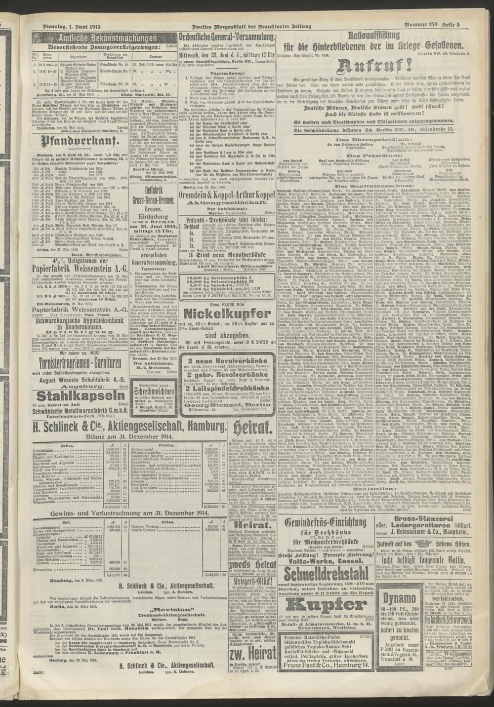 01.06.1915 = Nr. 150. Zweites Morgenblatt