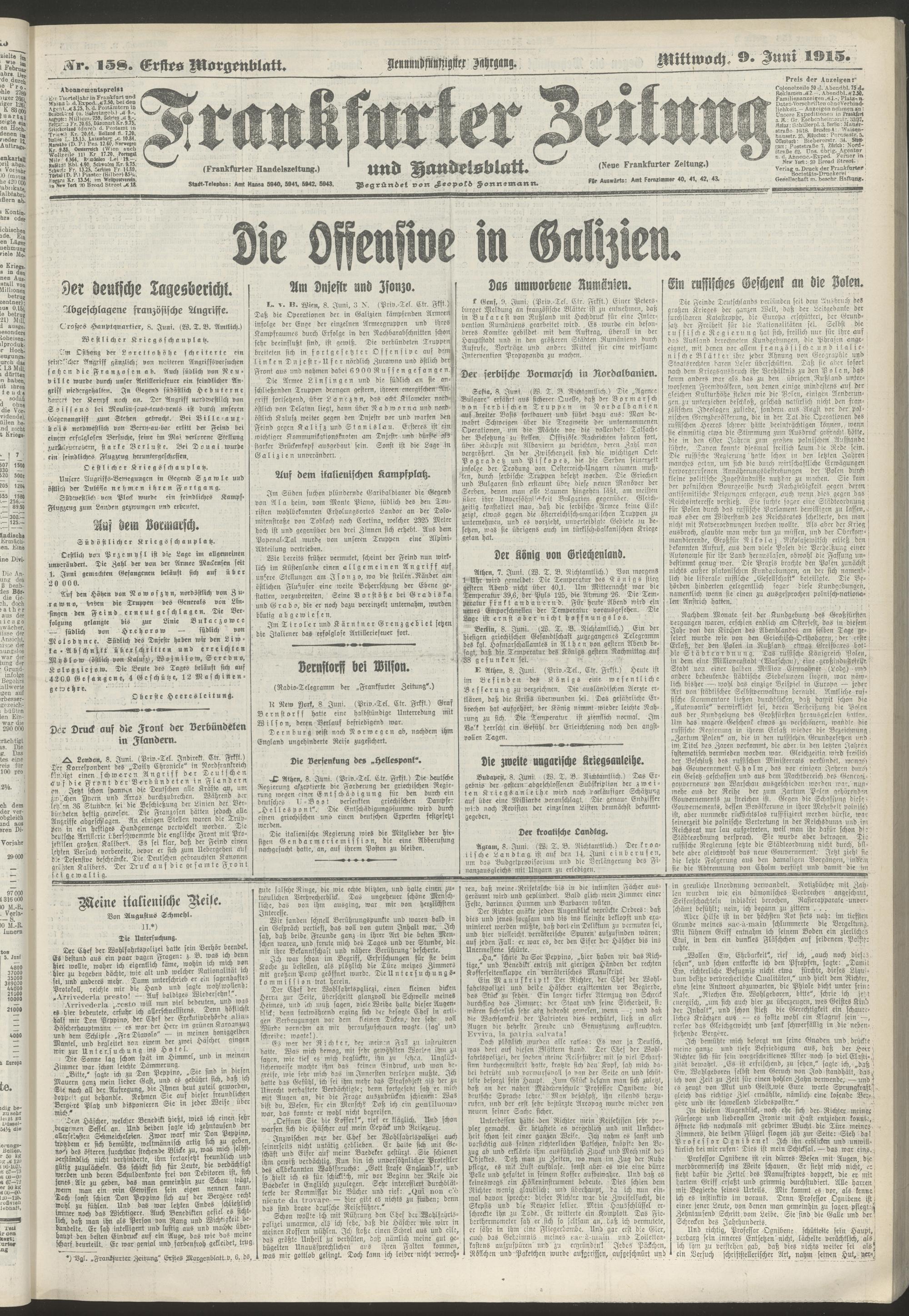 09.06.1915 = Nr. 158. Erstes Morgenblatt