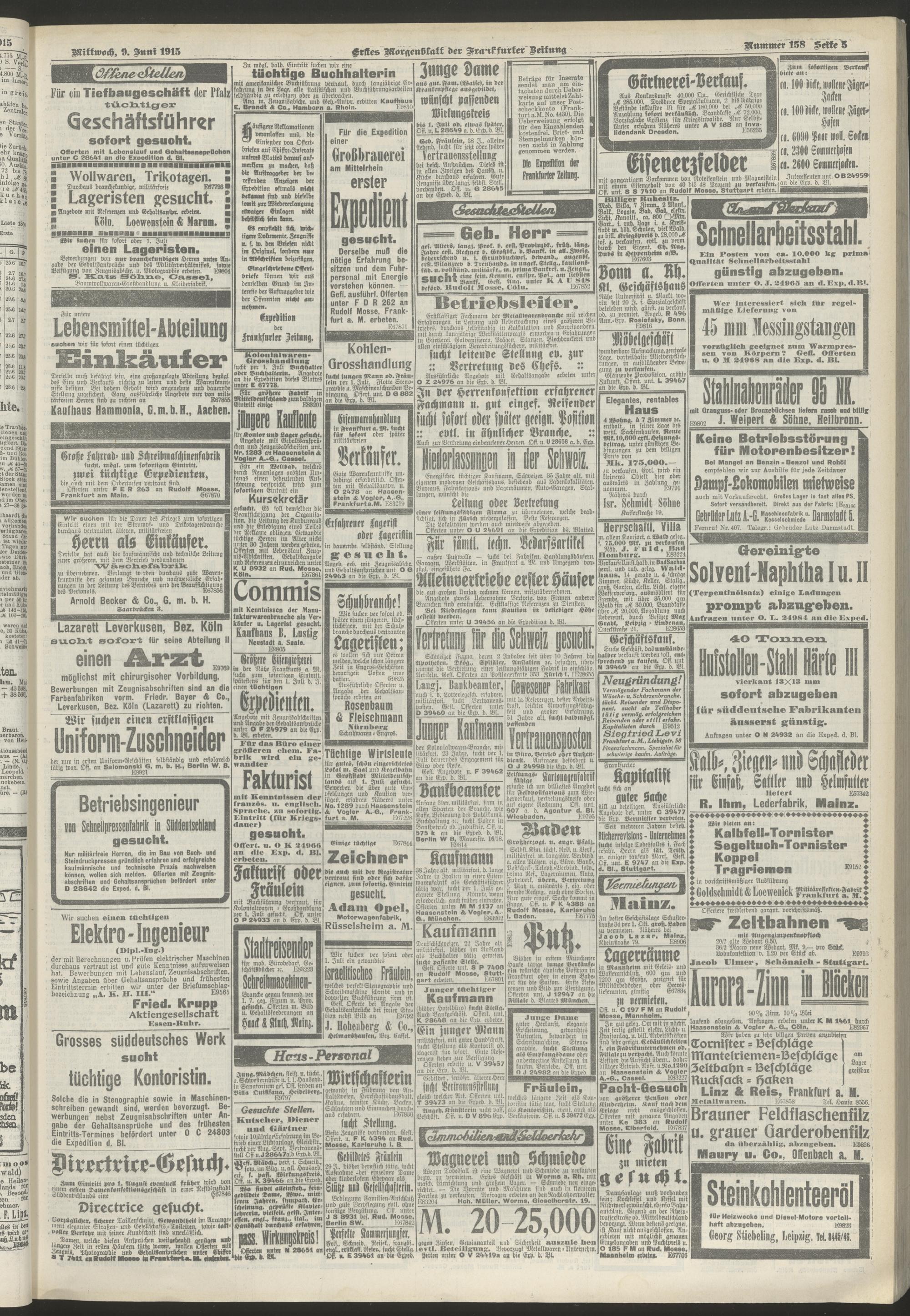 09.06.1915 = Nr. 158. Erstes Morgenblatt