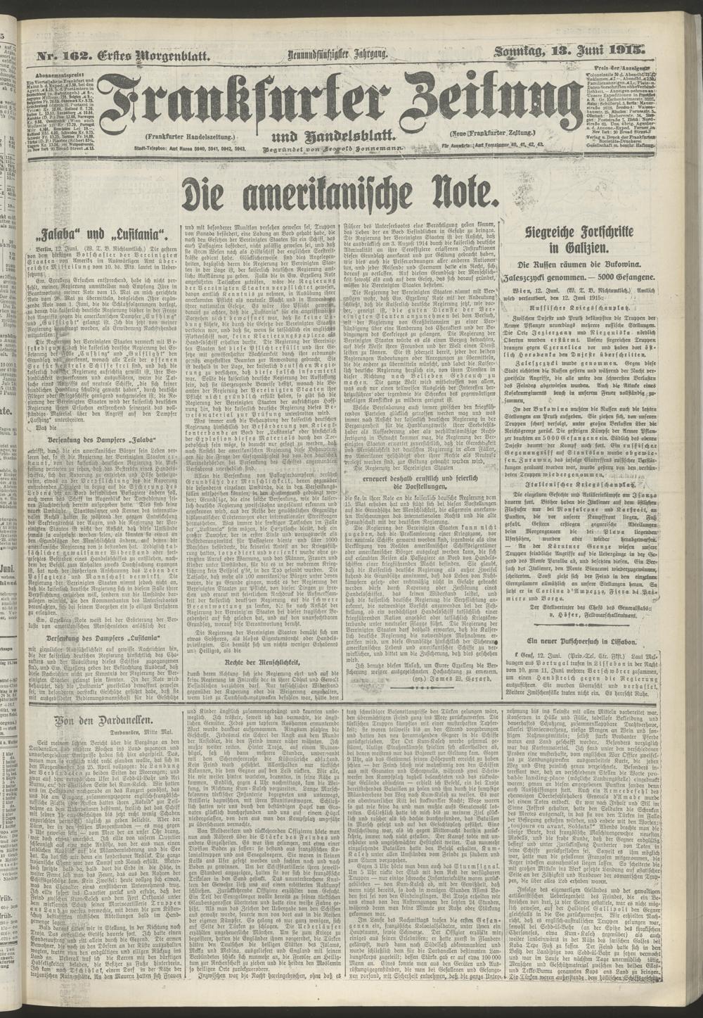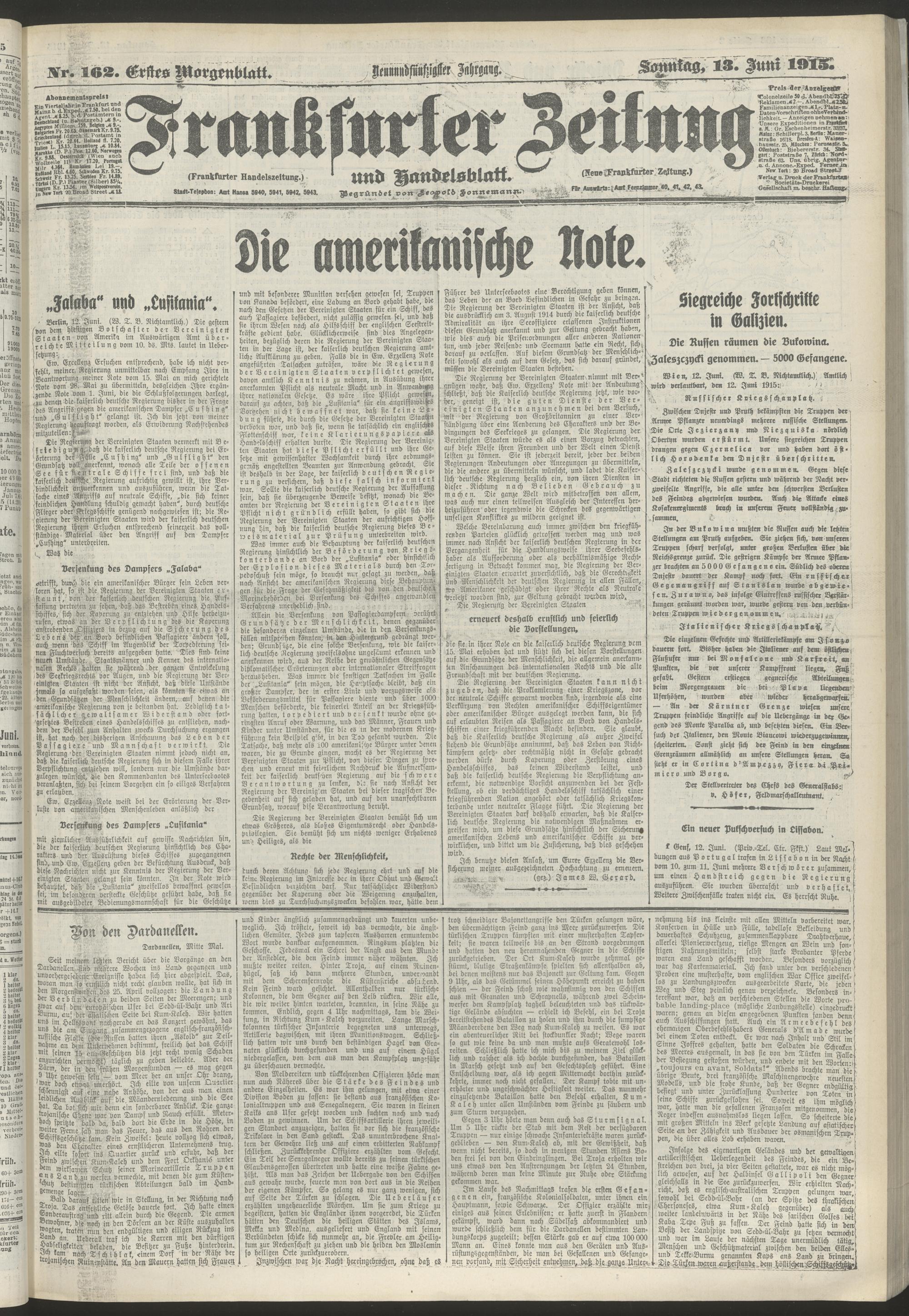 13.06.1915 = Nr. 162. Erstes Morgenblatt