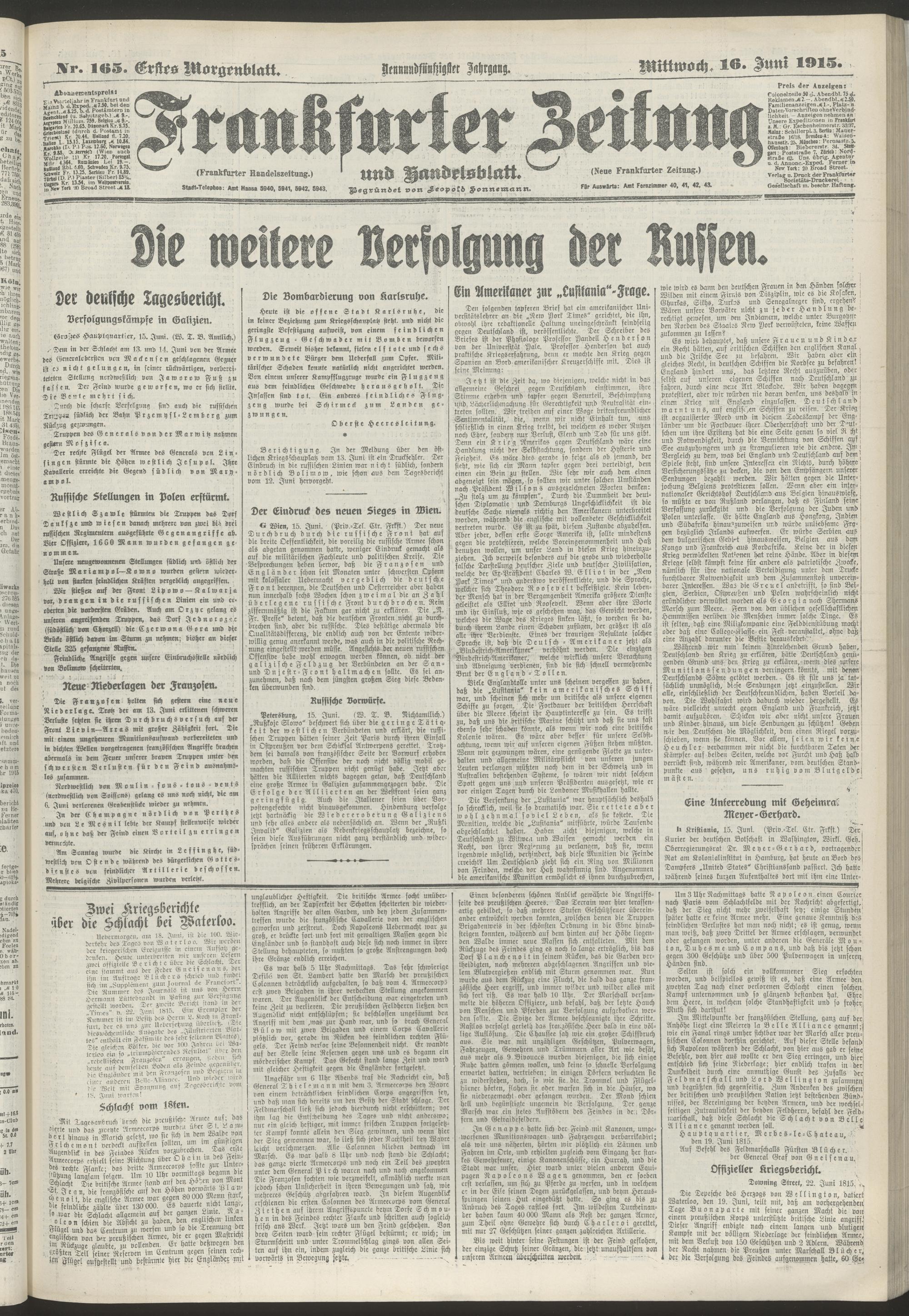 16.06.1915 = Nr. 165. Erstes Morgenblatt