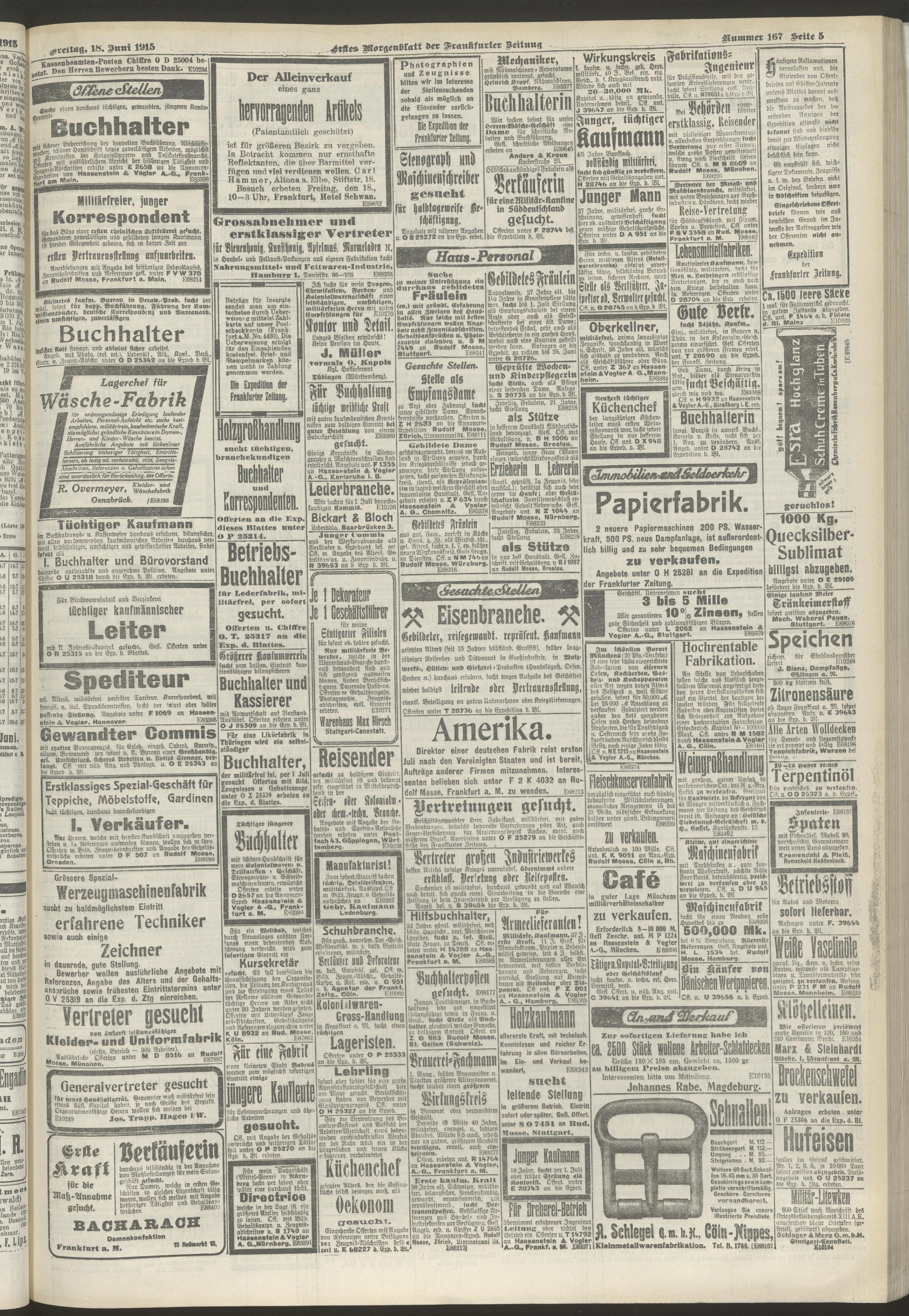 18.06.1915 = Nr. 167. Erstes Morgenblatt