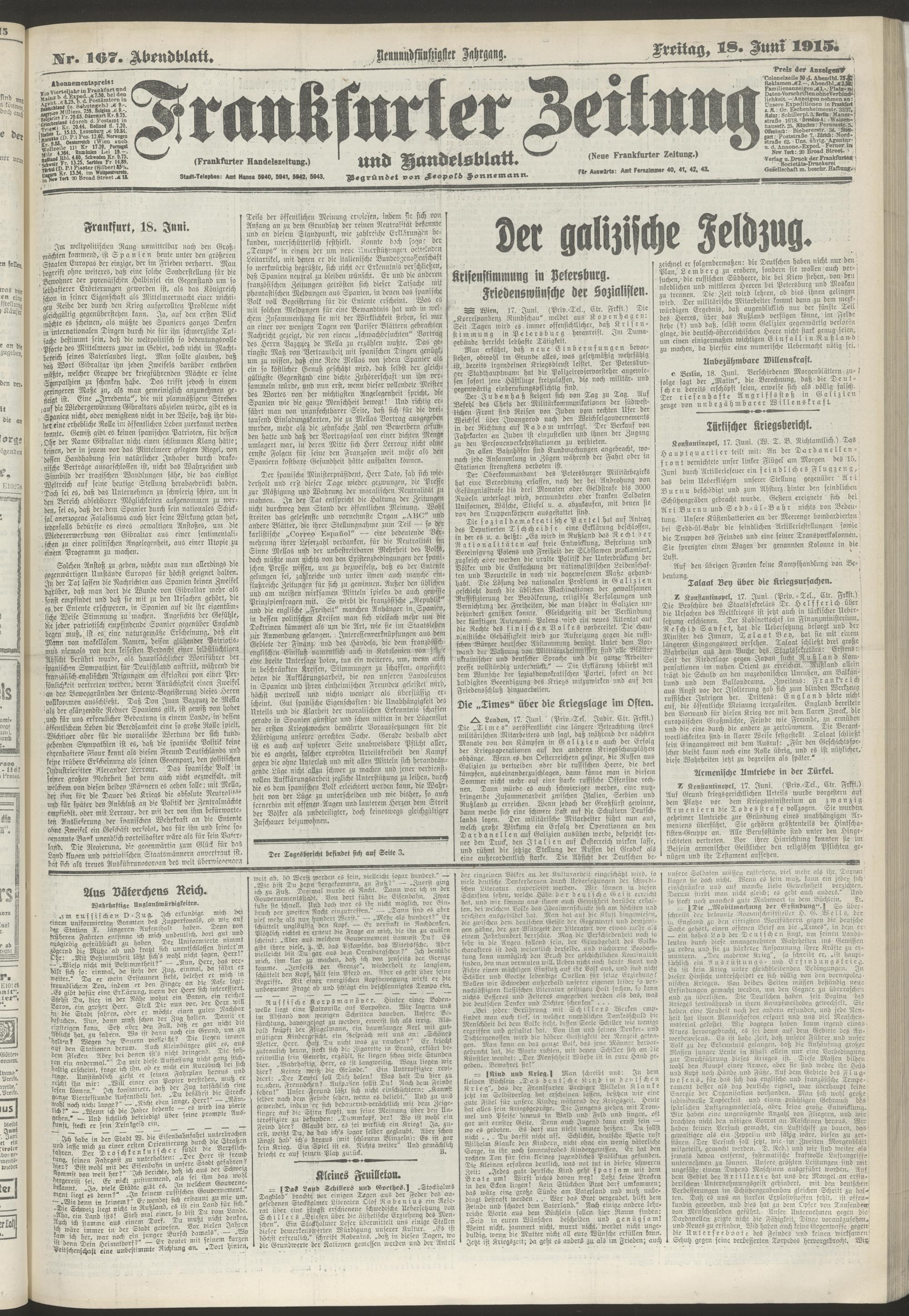 18.06.1915 = Nr. 167. Abendblatt
