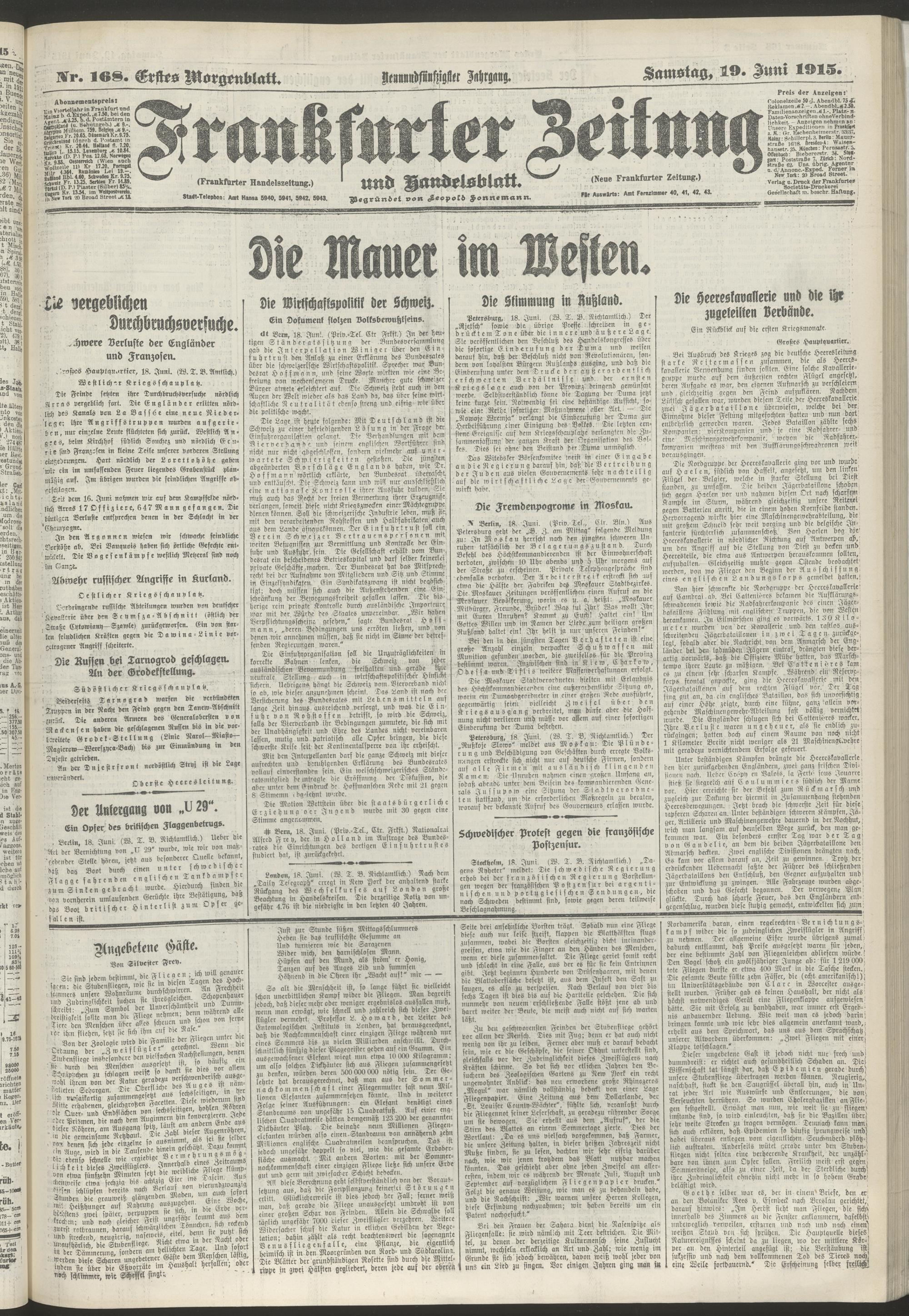 19.06.1915 = Nr. 168. Erstes Morgenblatt