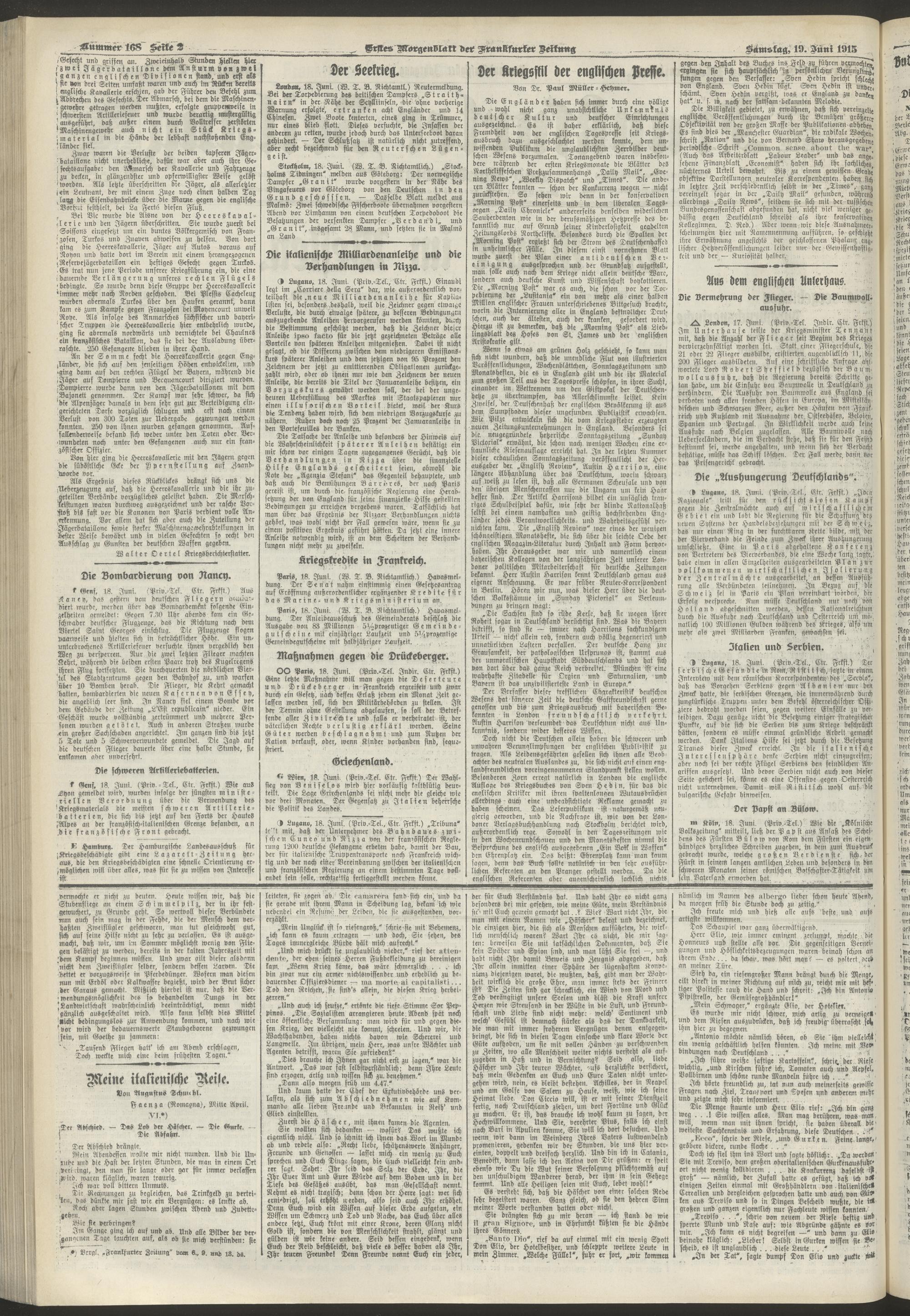 19.06.1915 = Nr. 168. Erstes Morgenblatt