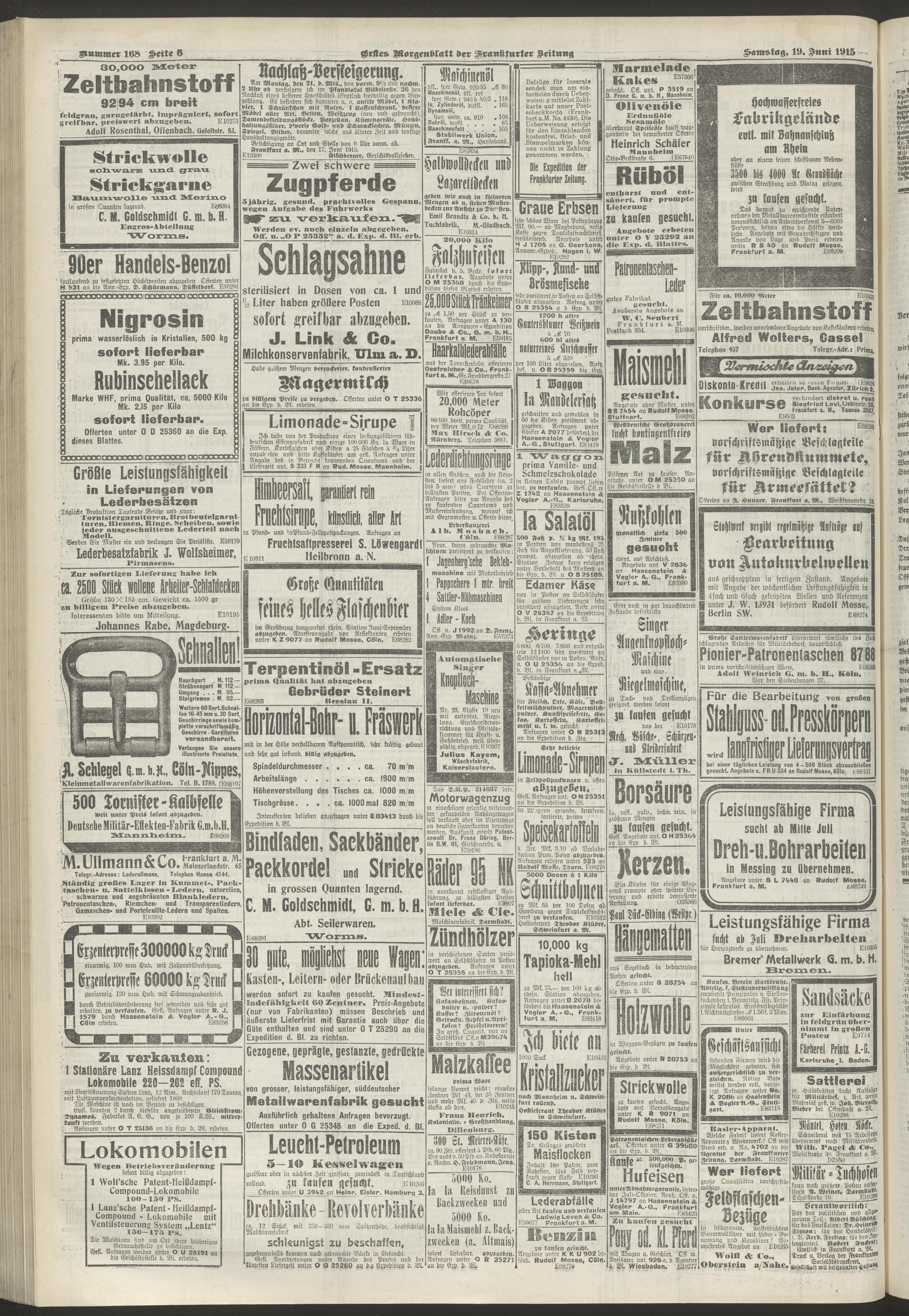 19.06.1915 = Nr. 168. Erstes Morgenblatt