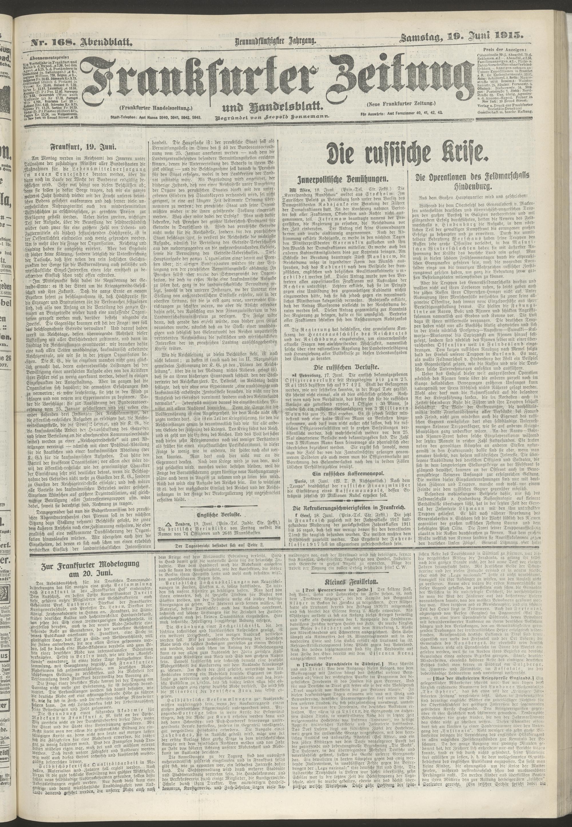19.06.1915 = Nr. 168. Abendblatt