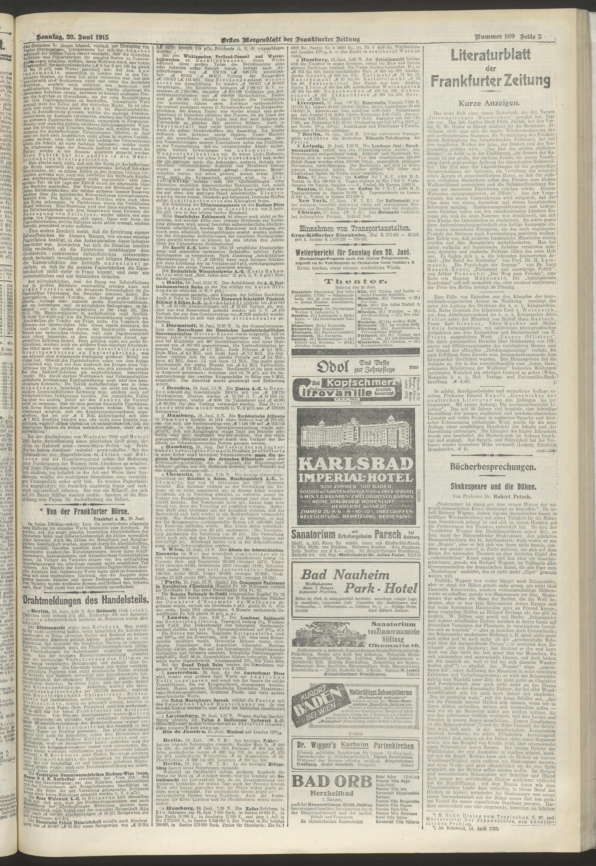 20.06.1915 = Nr. 169. Erstes Morgenblatt