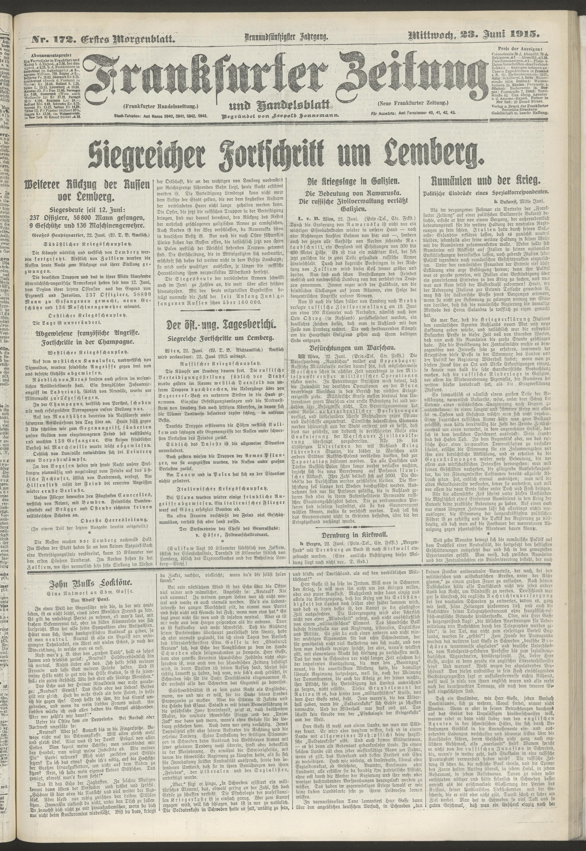 23.06.1915 = Nr. 172. Erstes Morgenblatt