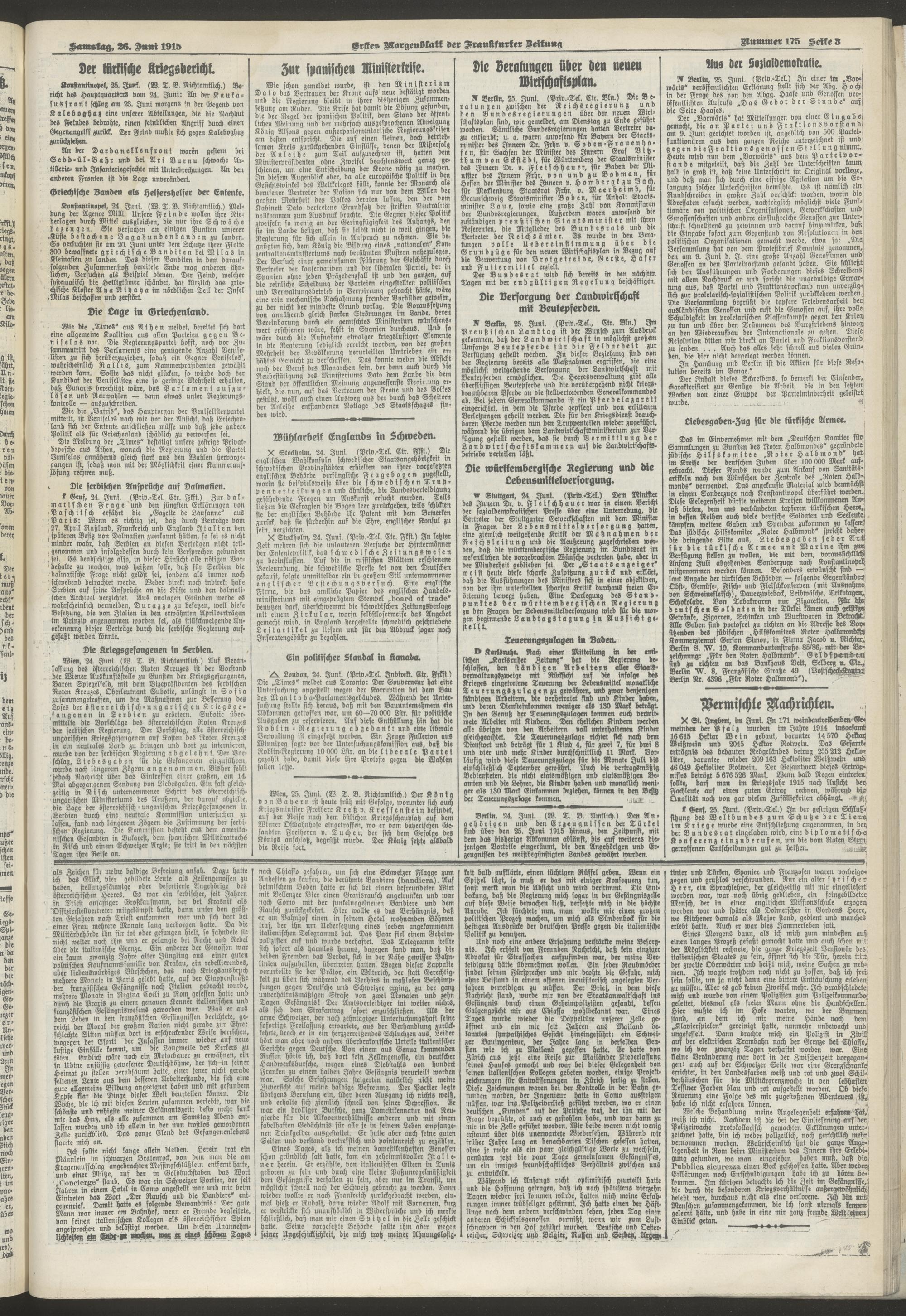 26.06.1915 = Nr. 175. Erstes Morgenblatt