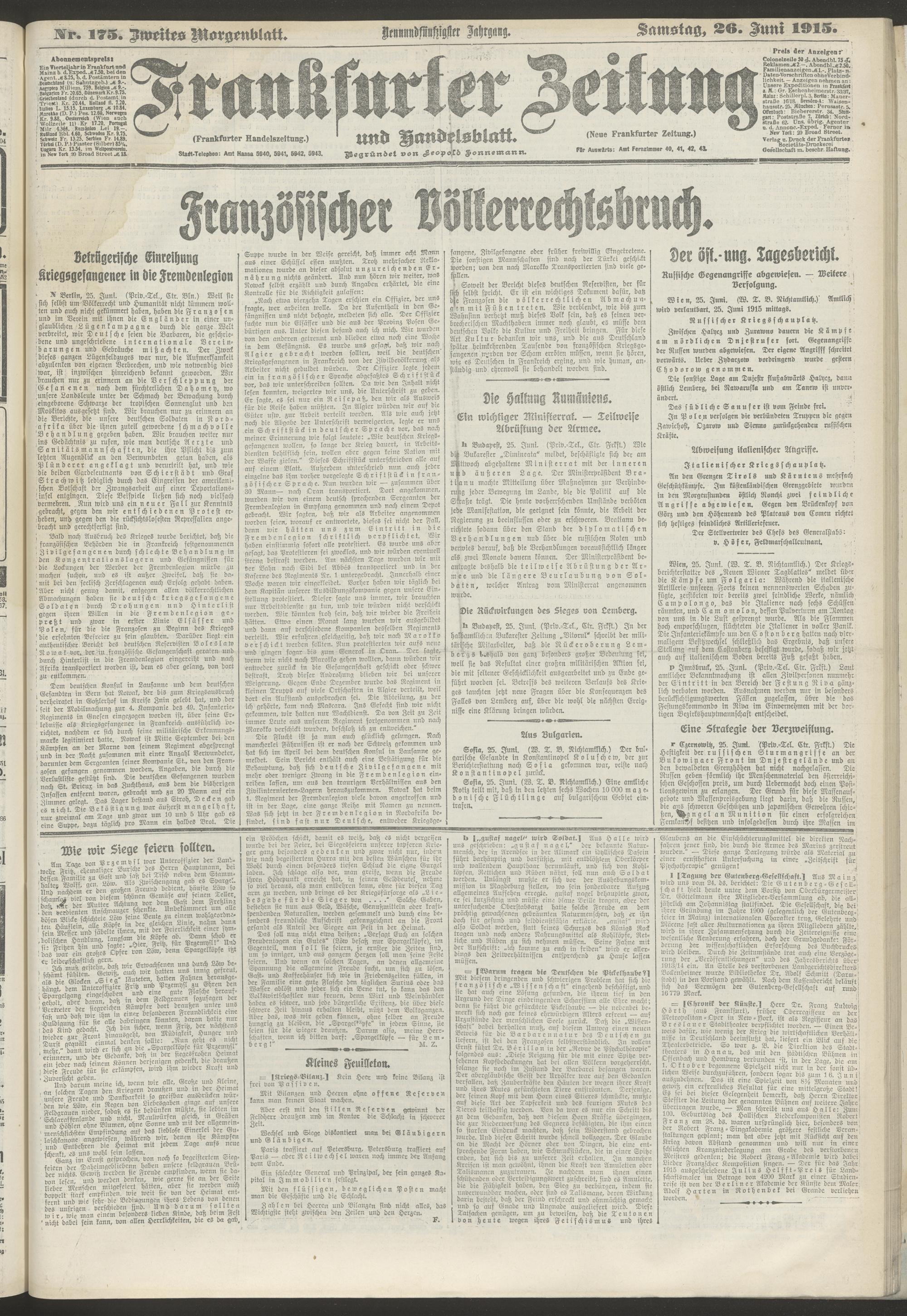 26.06.1915 = Nr. 175. Zweites Morgenblatt