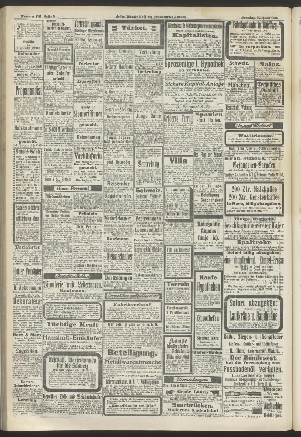 27.06.1915 = Nr. 176. Erstes Morgenblatt