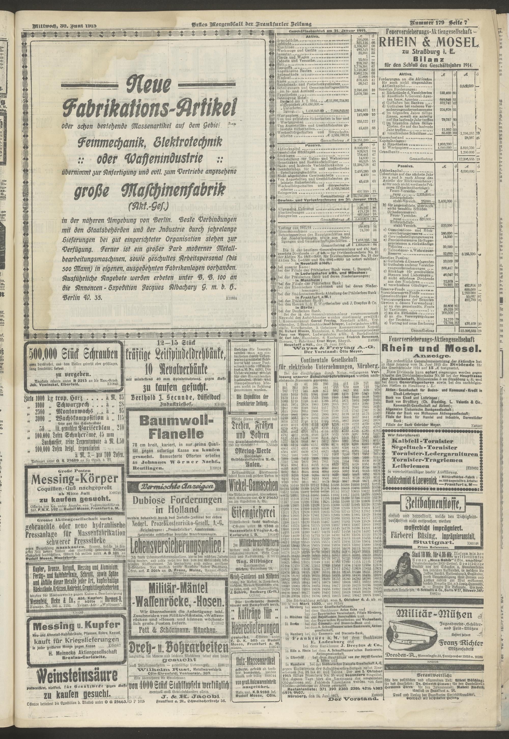 30.06.1915 = Nr. 179. Erstes Morgenblatt