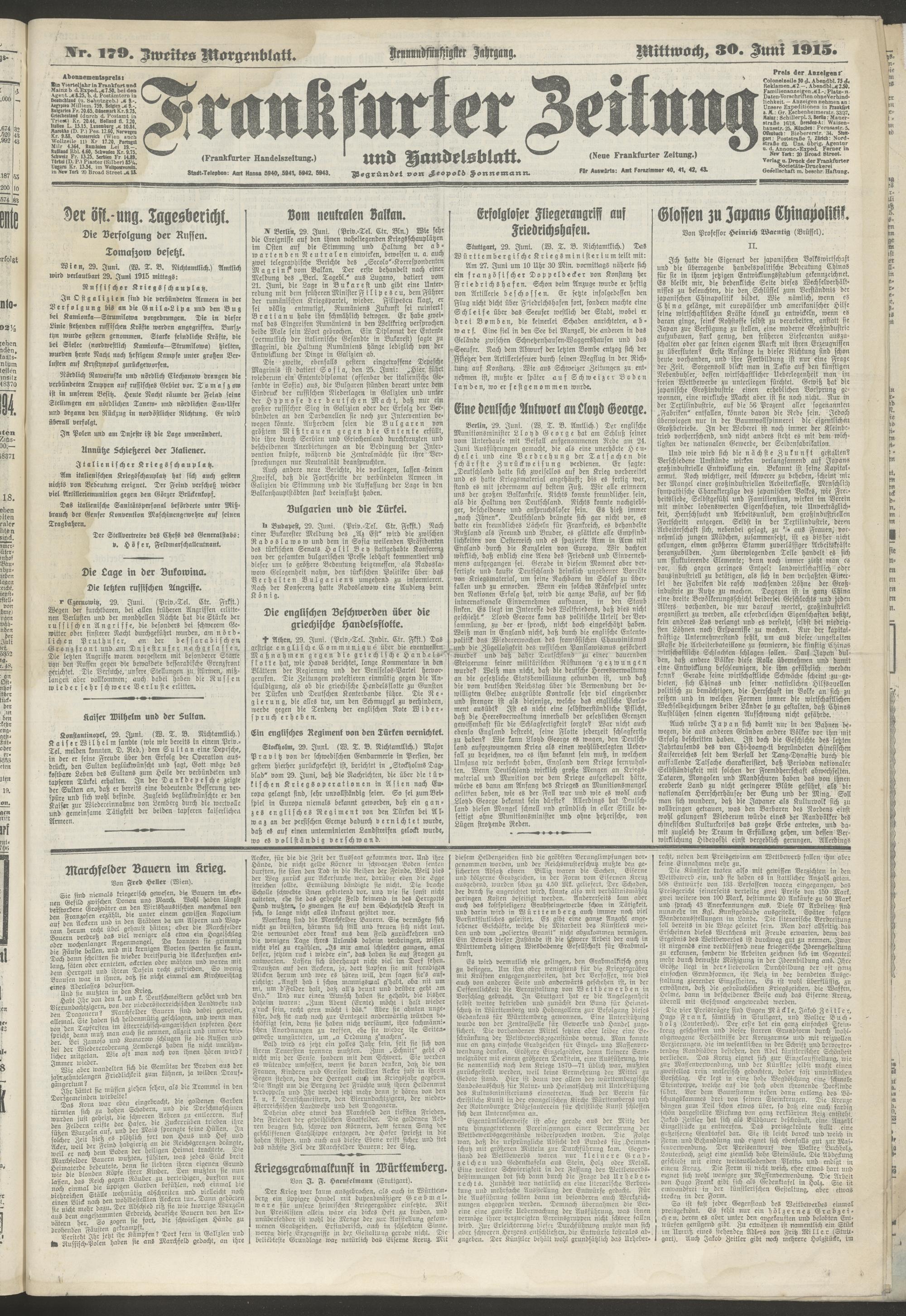 30.06.1915 = Nr. 179. Zweites Morgenblatt