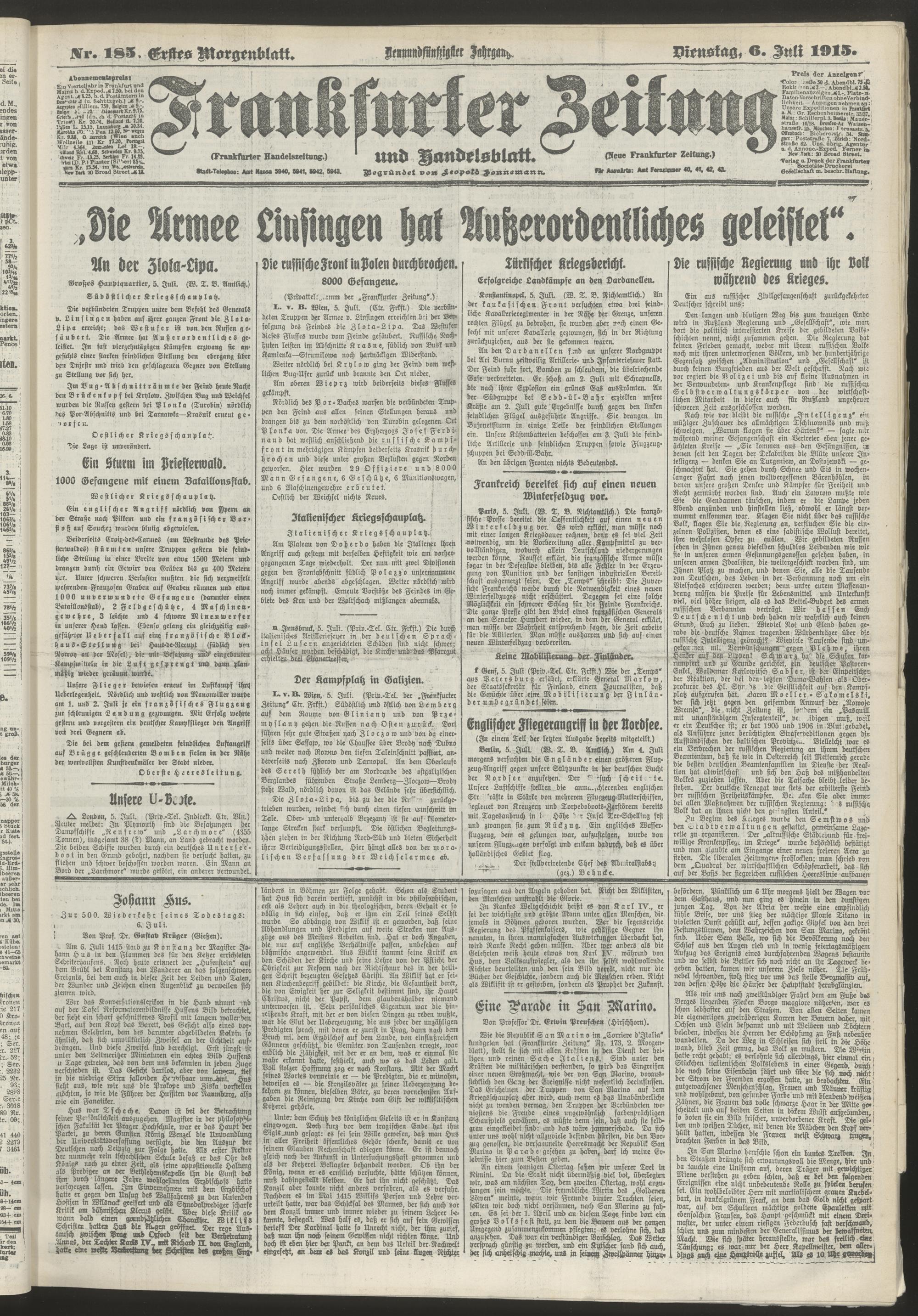 06.07.1915 = Nr. 185. Erstes Morgenblatt