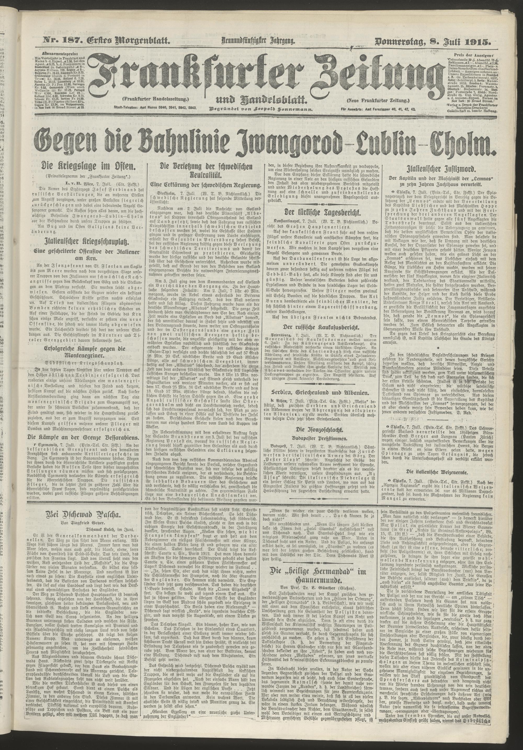 08.07.1915 = Nr. 187. Erstes Morgenblatt