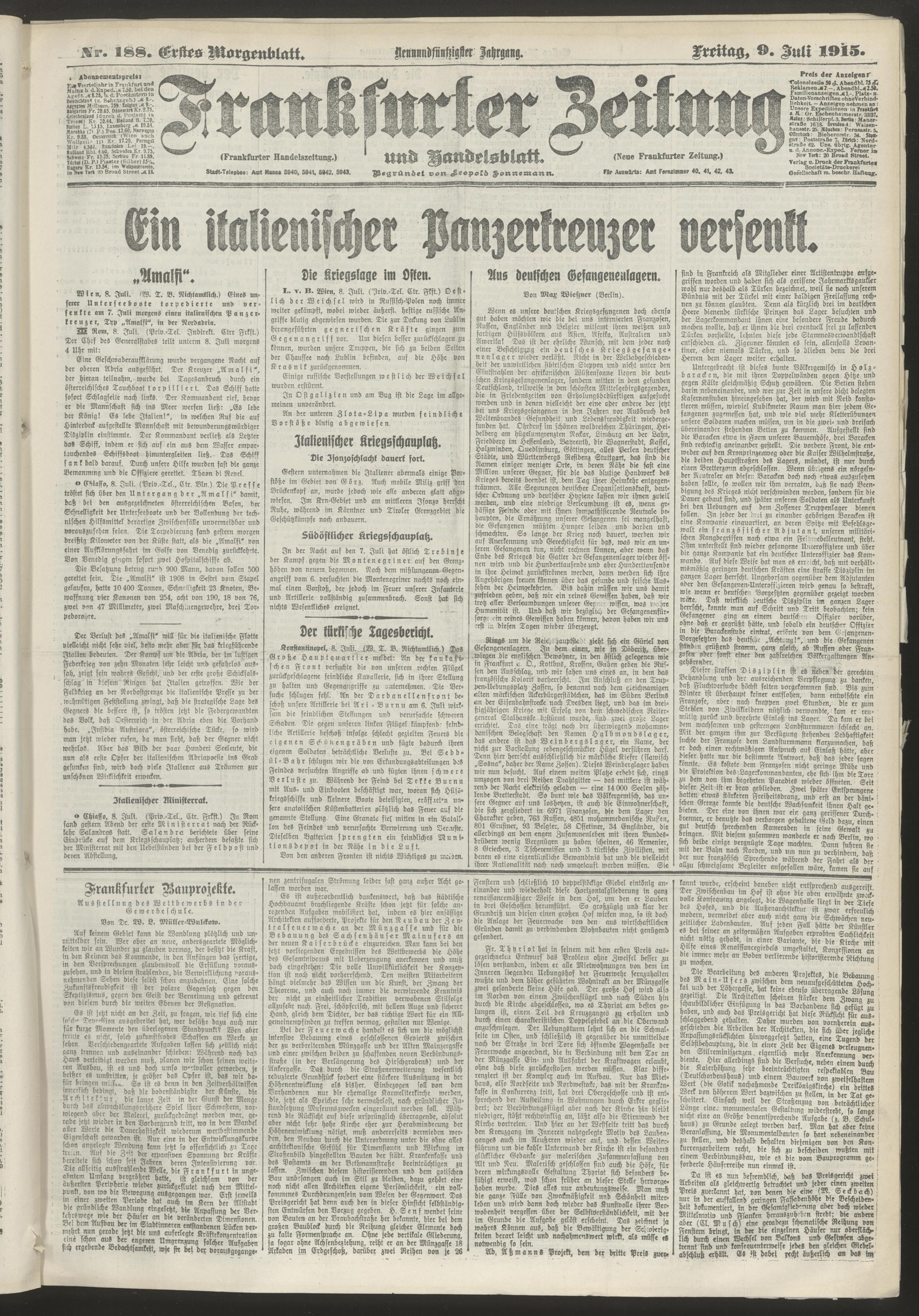09.07.1915 = Nr. 188. Erstes Morgenblatt