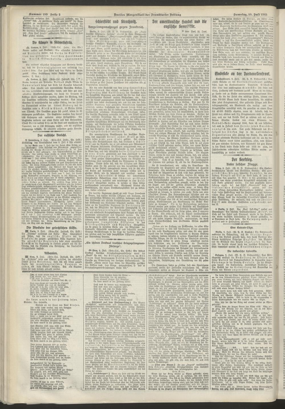 10.07.1915 = Nr. 189. Zweites Morgenblatt
