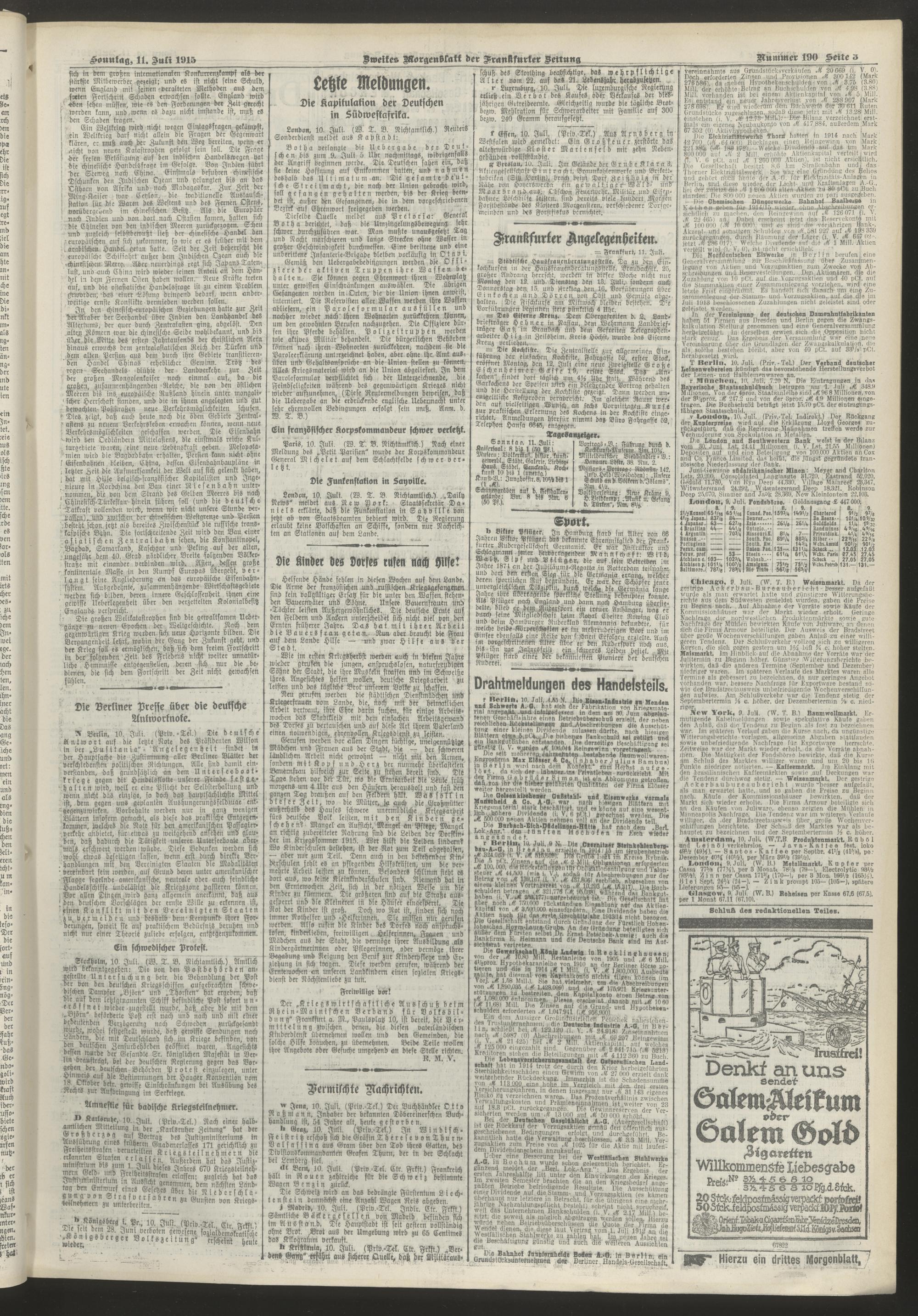 11.07.1915 = Nr. 190. Zweites Morgenblatt