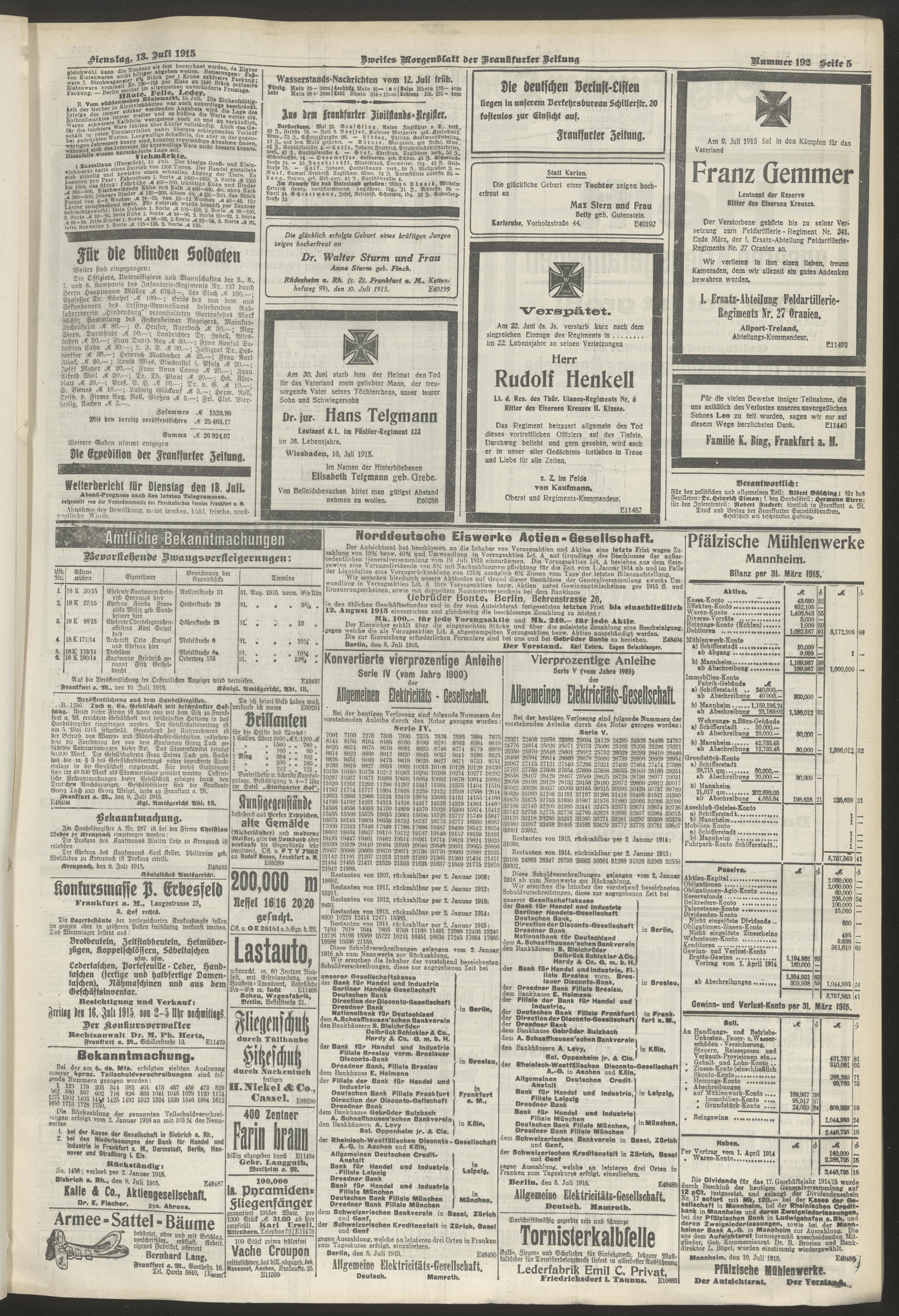 13.07.1915 = Nr. 192. Zweites Morgenblatt