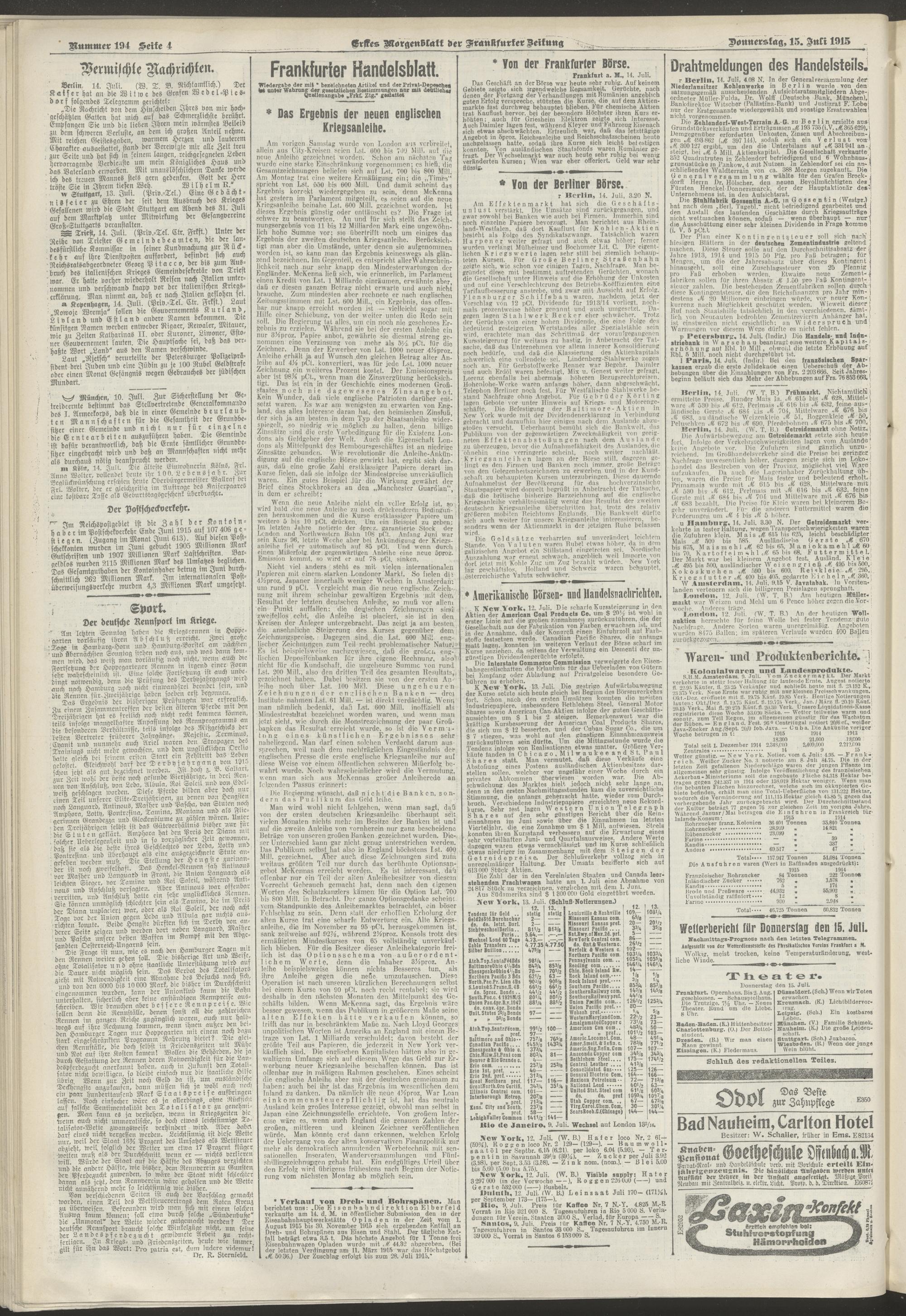 15.07.1915 = Nr. 194. Erstes Morgenblatt