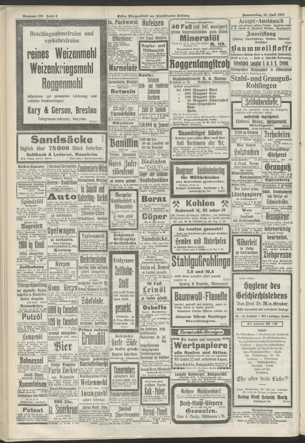 15.07.1915 = Nr. 194. Erstes Morgenblatt