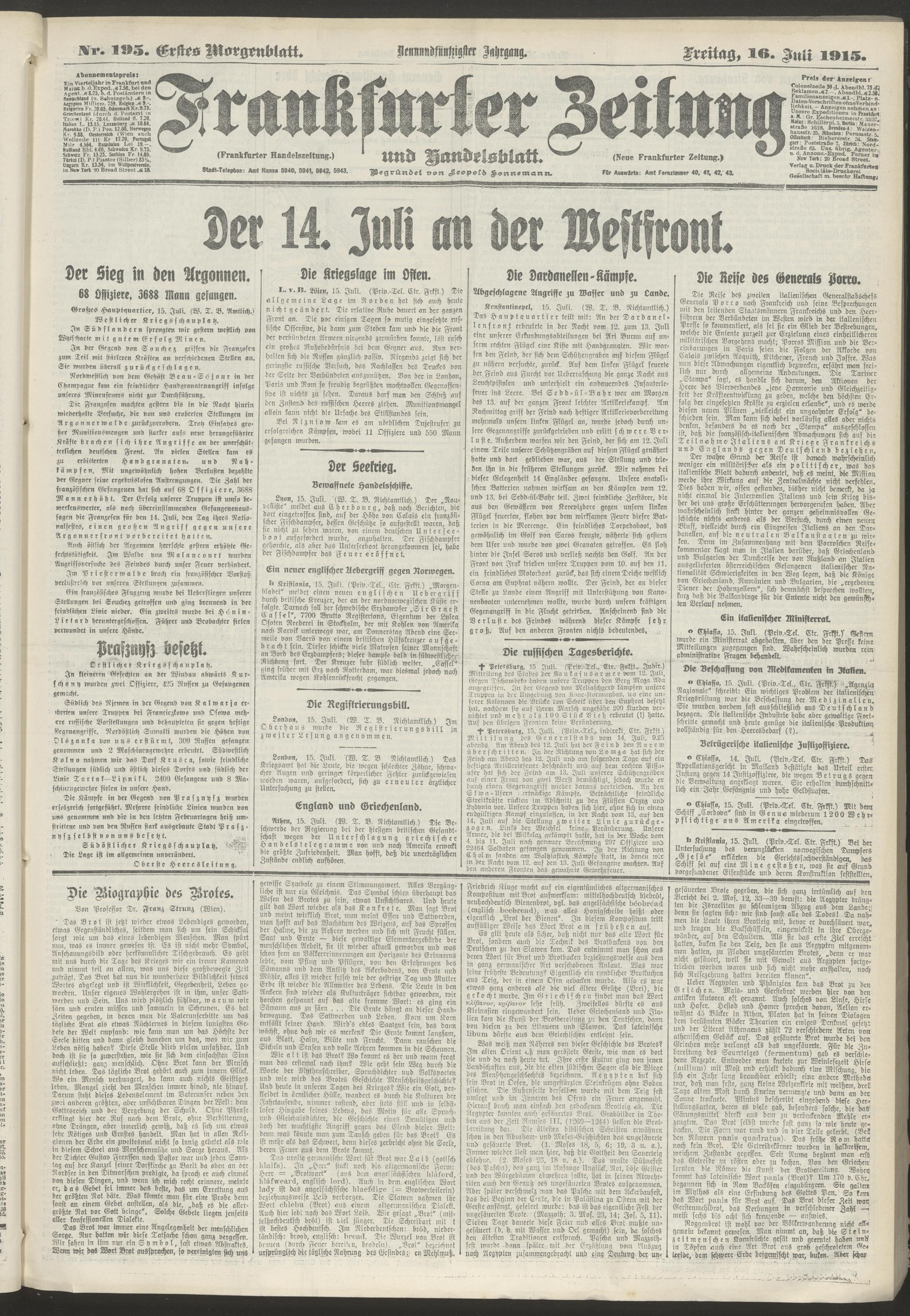 16.07.1915 = Nr. 195. Erstes Morgenblatt