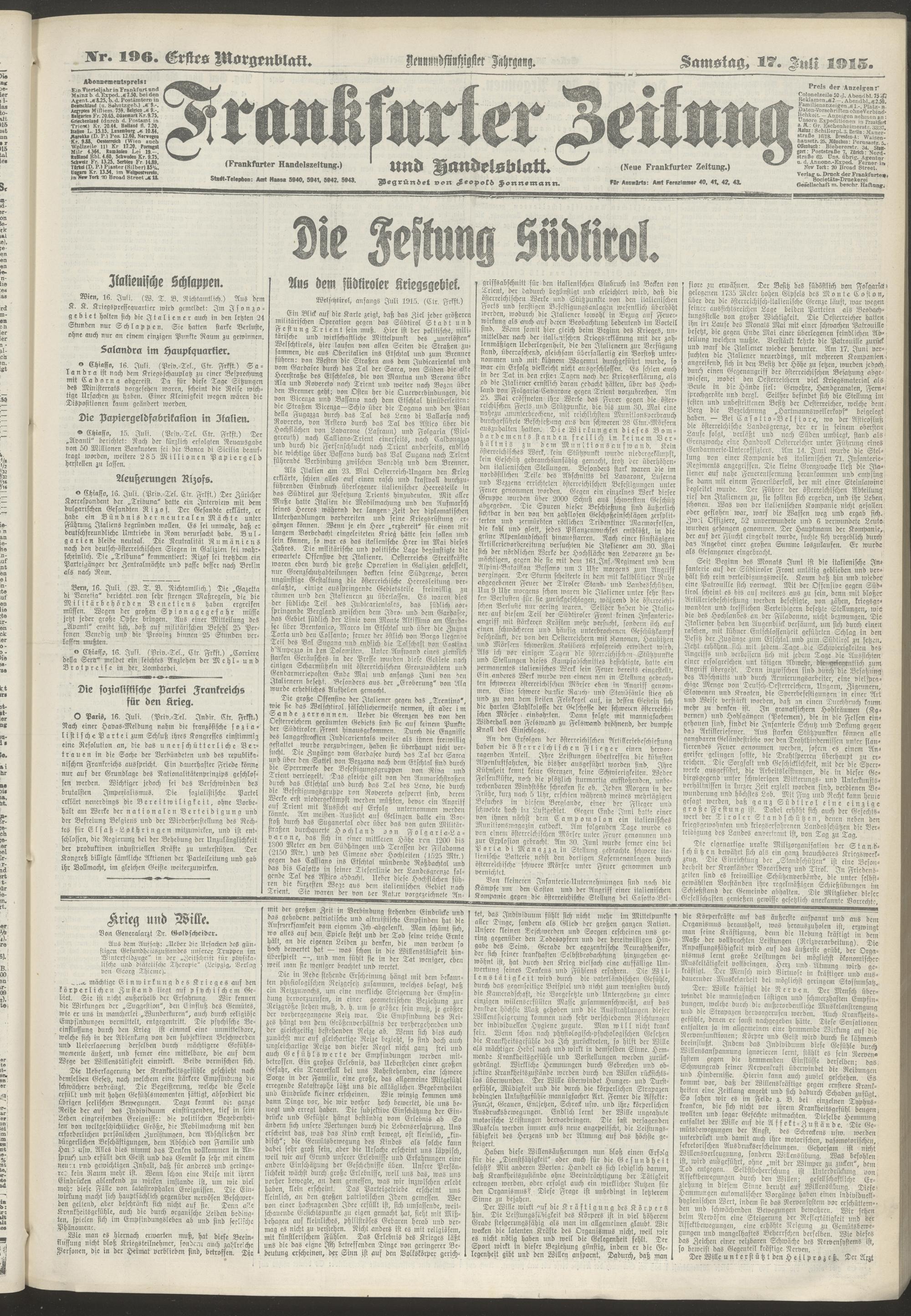 17.07.1915 = Nr. 196. Erstes Morgenblatt