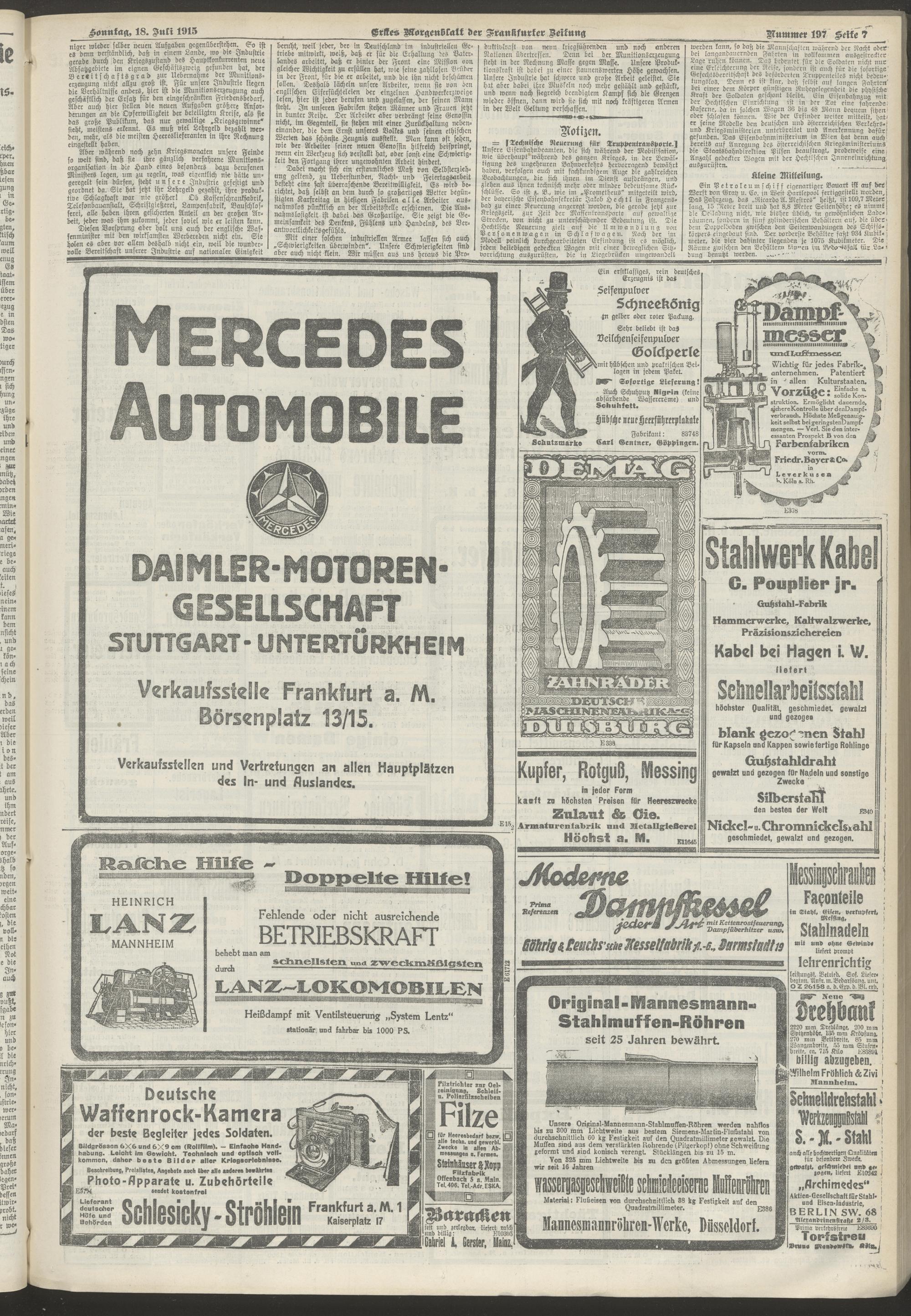 18.07.1915 = Nr. 197. Erstes Morgenblatt