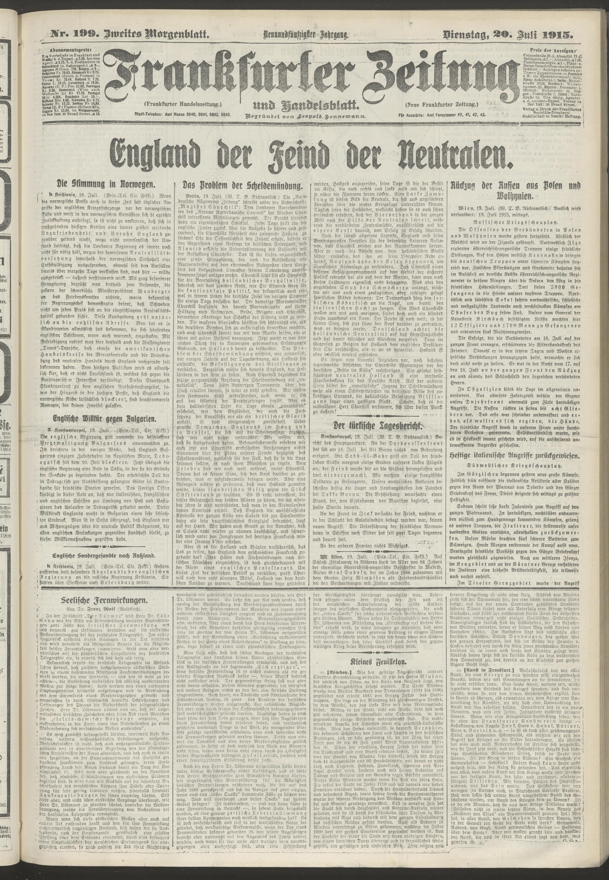 20.07.1915 = Nr. 199. Zweites Morgenblatt