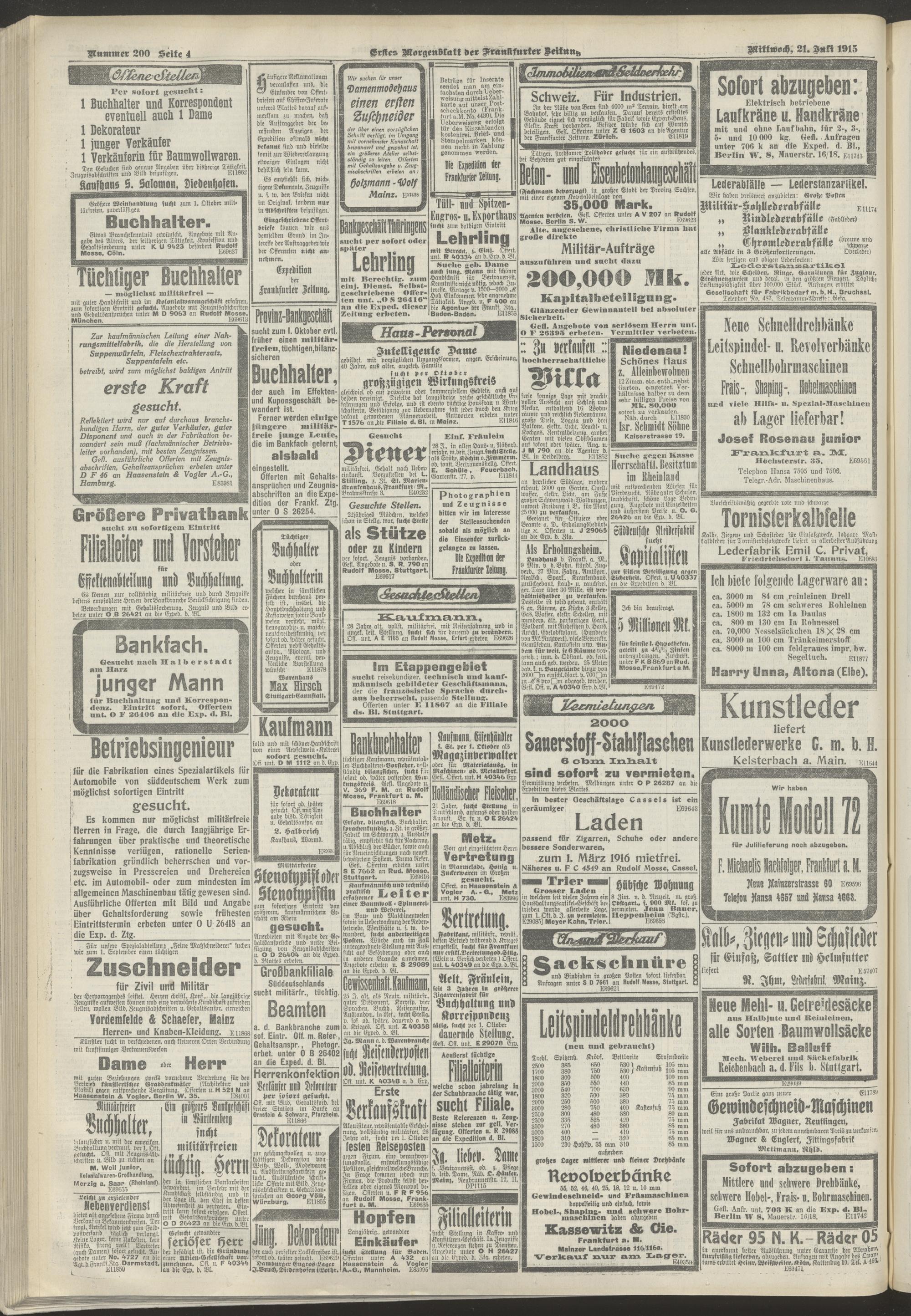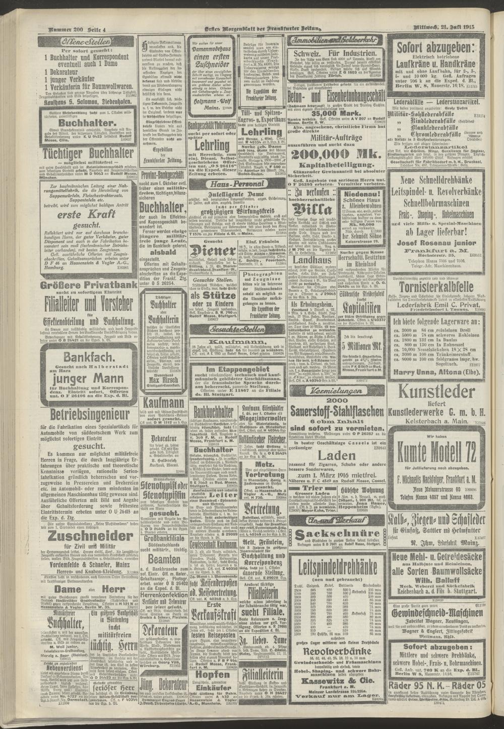 21.07.1915 = Nr. 200. Erstes Morgenblatt