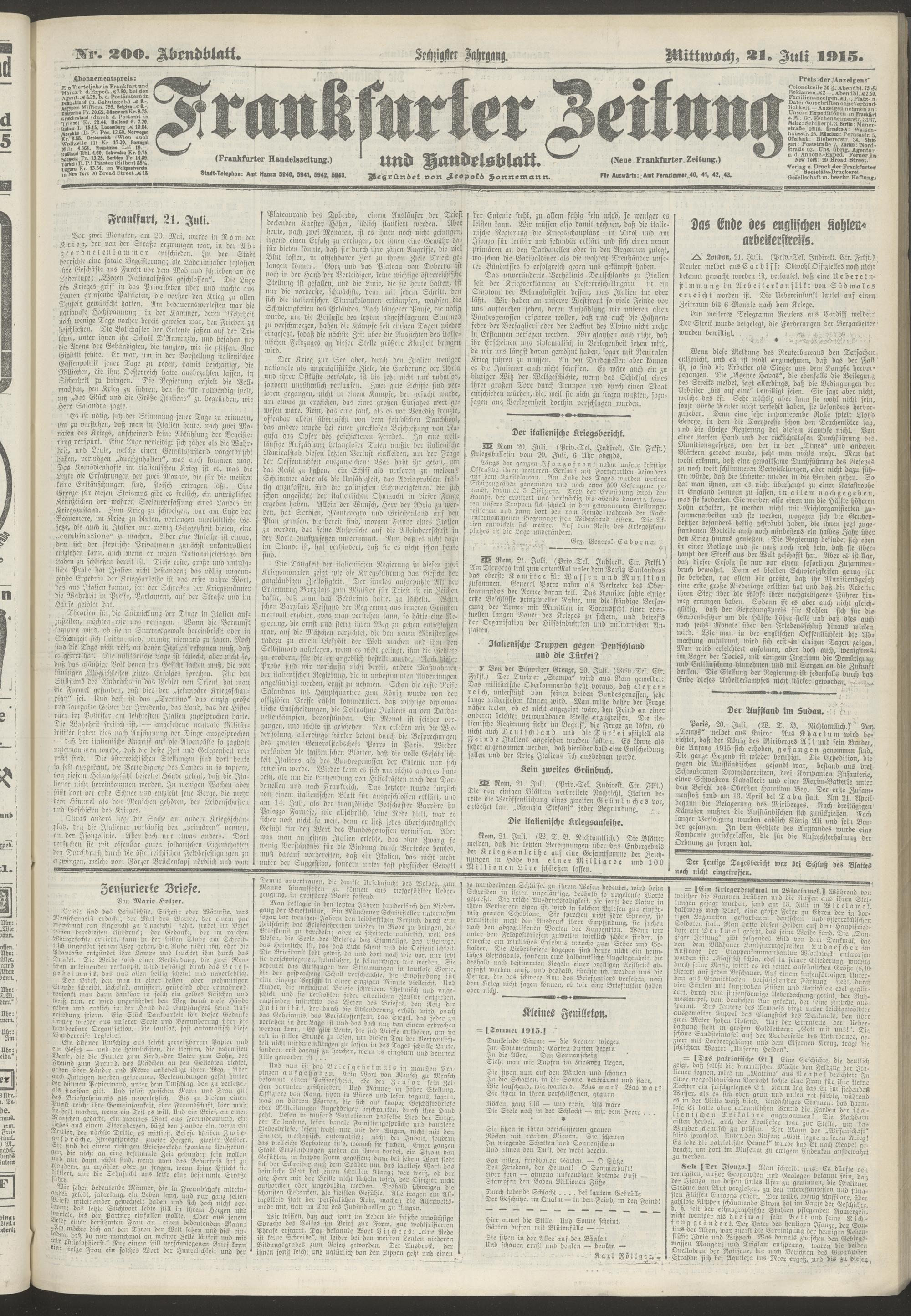 21.07.1915 = Nr. 200. Abendblatt