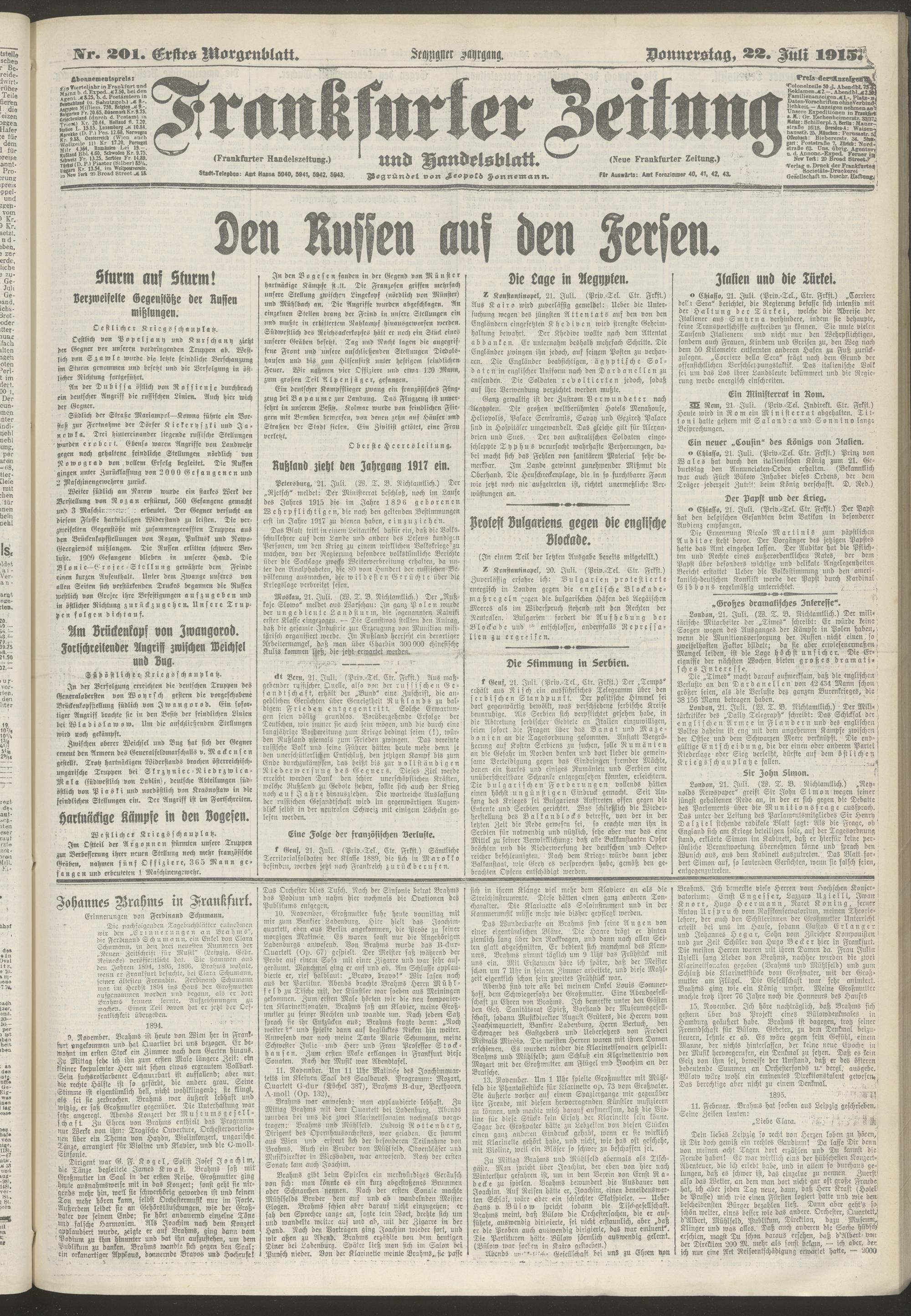 22.07.1915 = Nr. 201. Erstes Morgenblatt