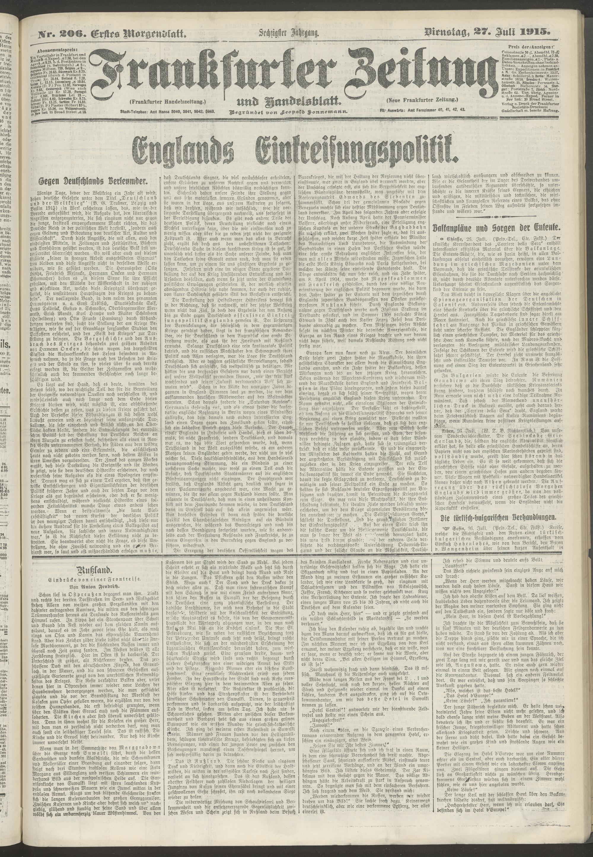 27.07.1915 = Nr. 206. Erstes Morgenblatt