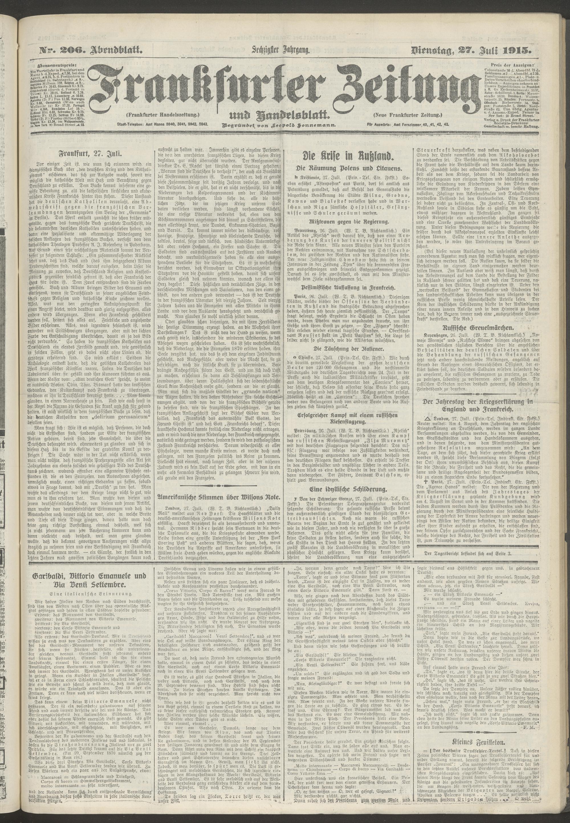 27.07.1915 = Nr. 206. Abendblatt