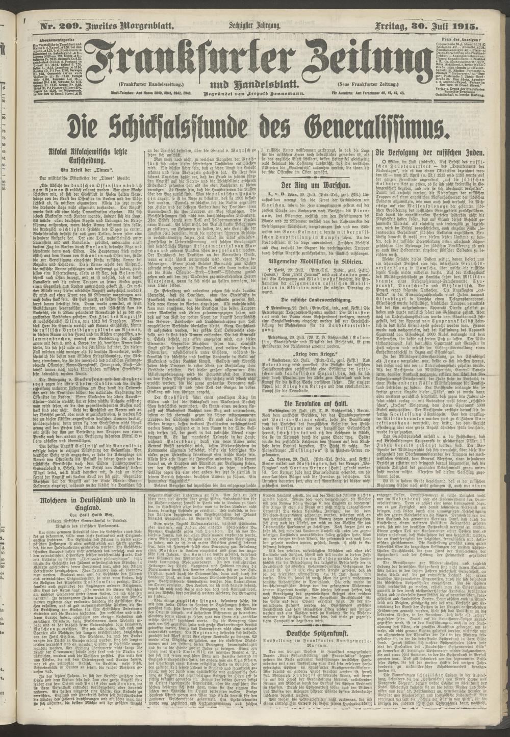 30.07.1915 = Nr. 209. Zweites Morgenblatt