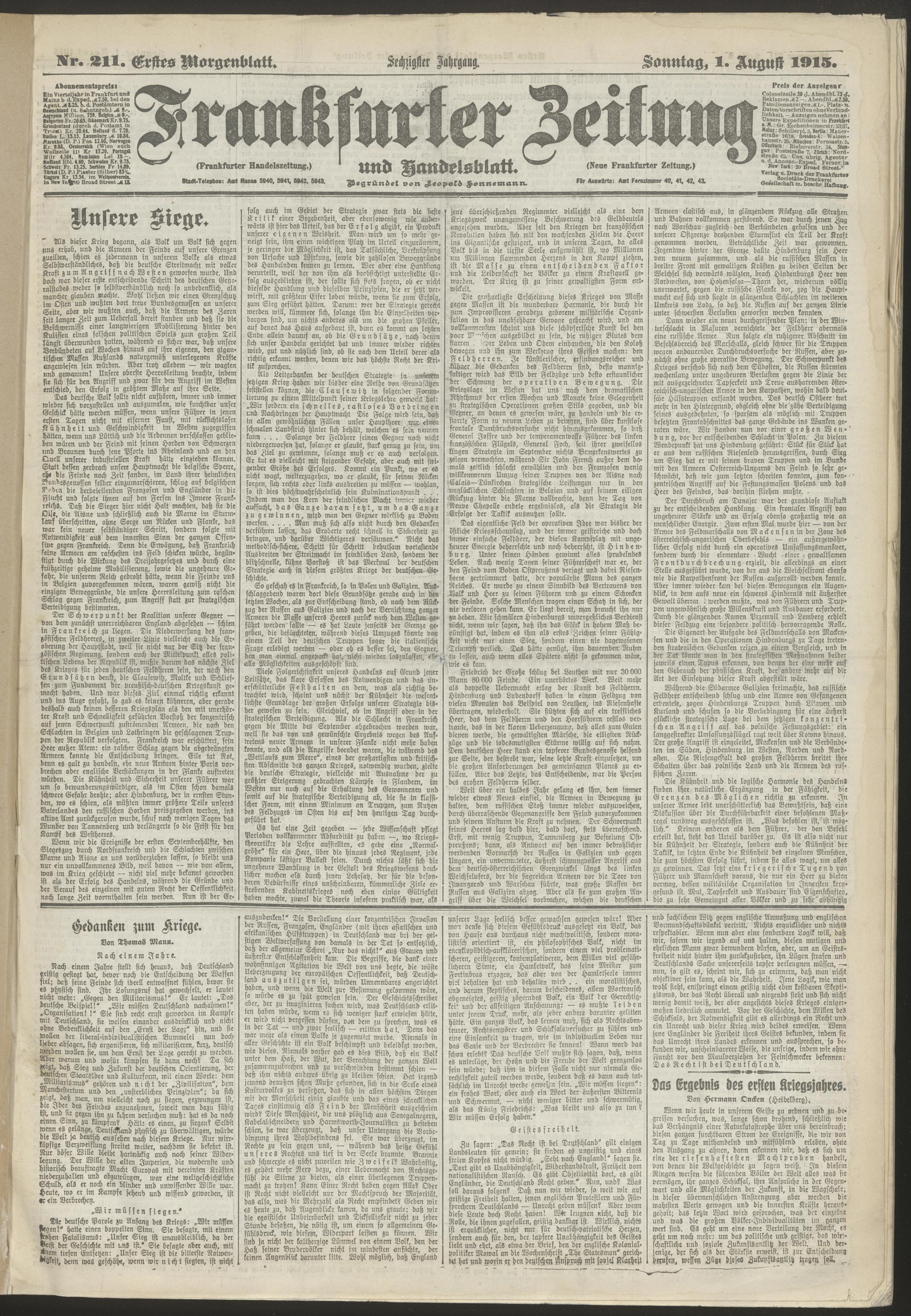 01.08.1915 = Nr. 211. Erstes Morgenblatt