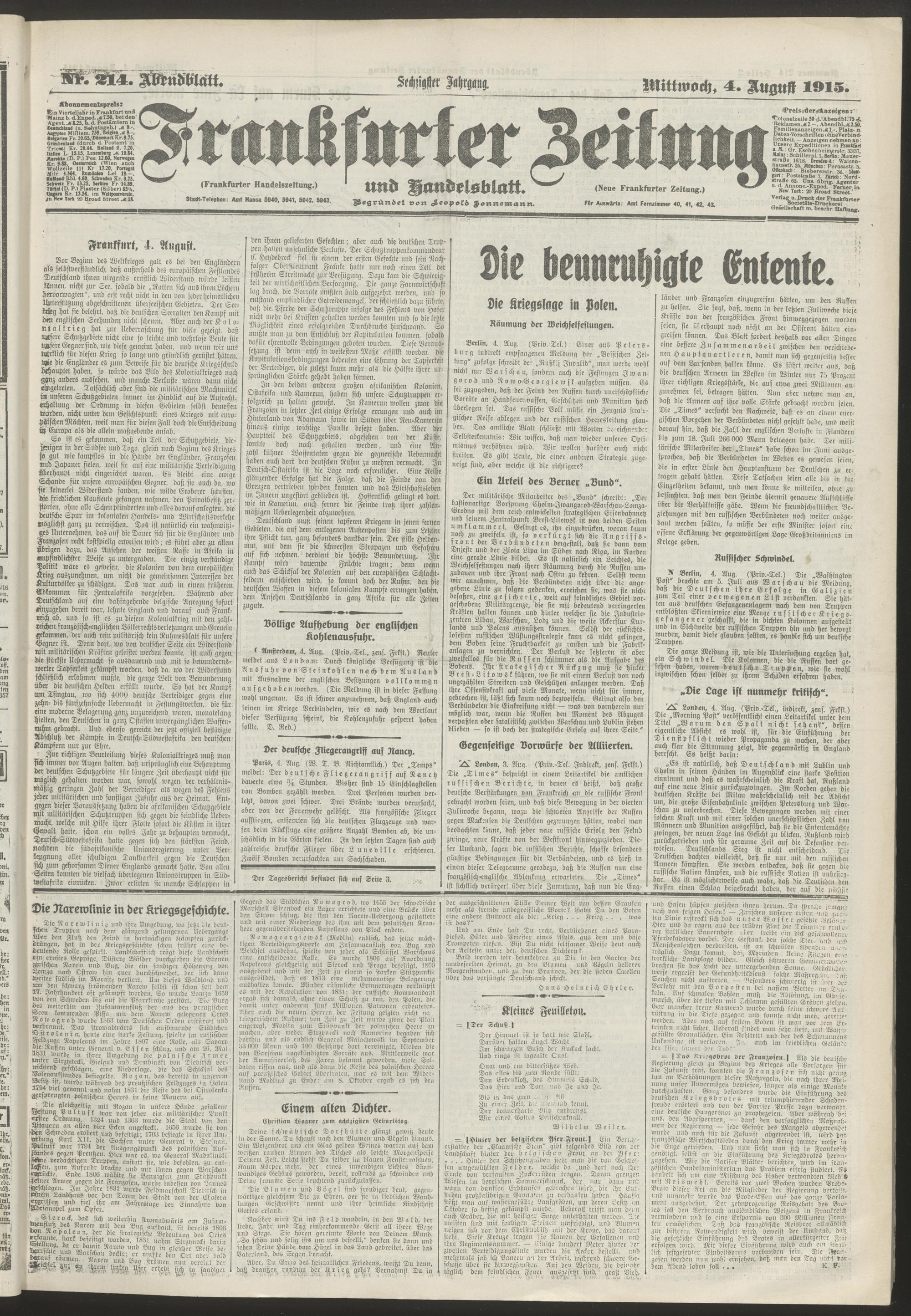 04.08.1915 = Nr. 214. Abendblatt