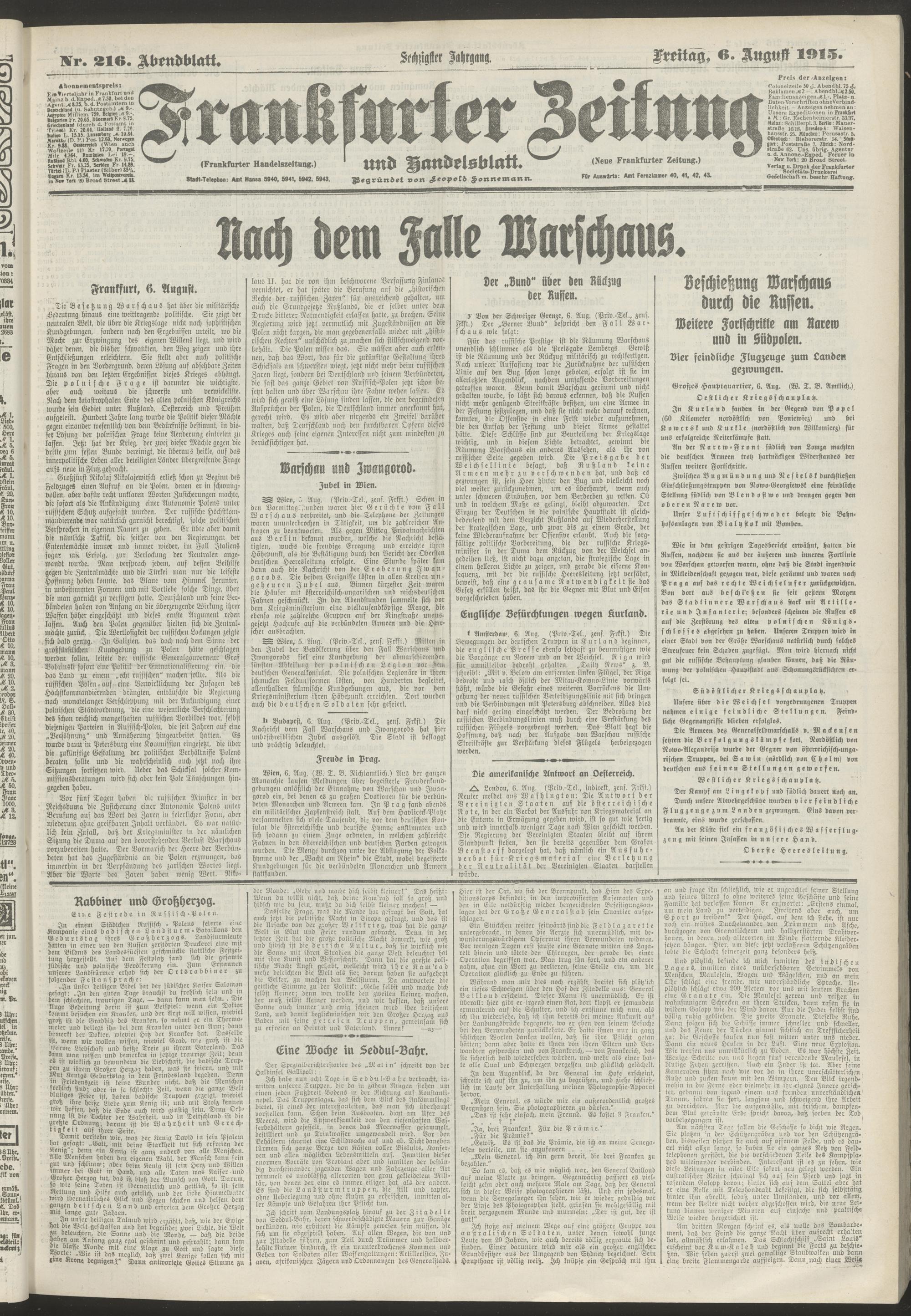 06.08.1915 = Nr. 216. Abendblatt