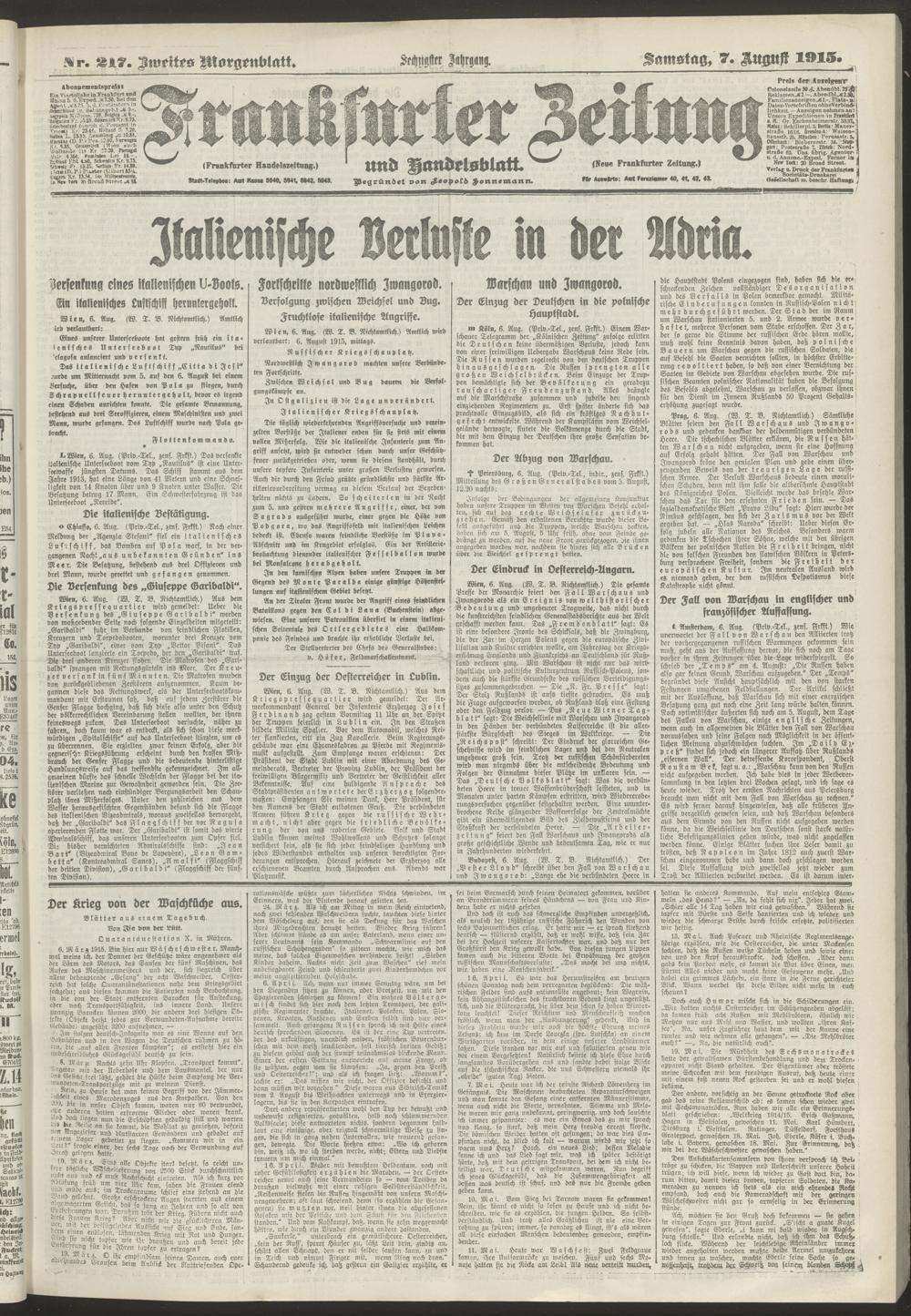 07.08.1915 = Nr. 217. Zweites Morgenblatt